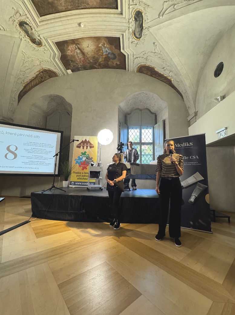 17.10.2024 jsme uspořádali 1. Kosmetické fórum. Setkání studentek oboru kosmetické služby s profesionály a firmami v oboru kosmetika. Refektář GASK – Galerie Středočeského kraje tak zaplnilo na 150 účastníků této skvělé akce, které propojila všechny úrovně od vzdělávání přes praxe až po podnikání v oboru krásy. Program zahrnoval mimo jiné přednášky z dermatologie, vizážistiky, podologie, ošetření pleti a v neposlední řadě poutavé vyprávění z profesního života kosmetiček. Jako doprovodný program probíhaly prezentace odborných firem. Velké poděkování patří všem partnerům, kteří se na této úspěšné akci podíleli a i díky nim dopadla celá akce skvěle.