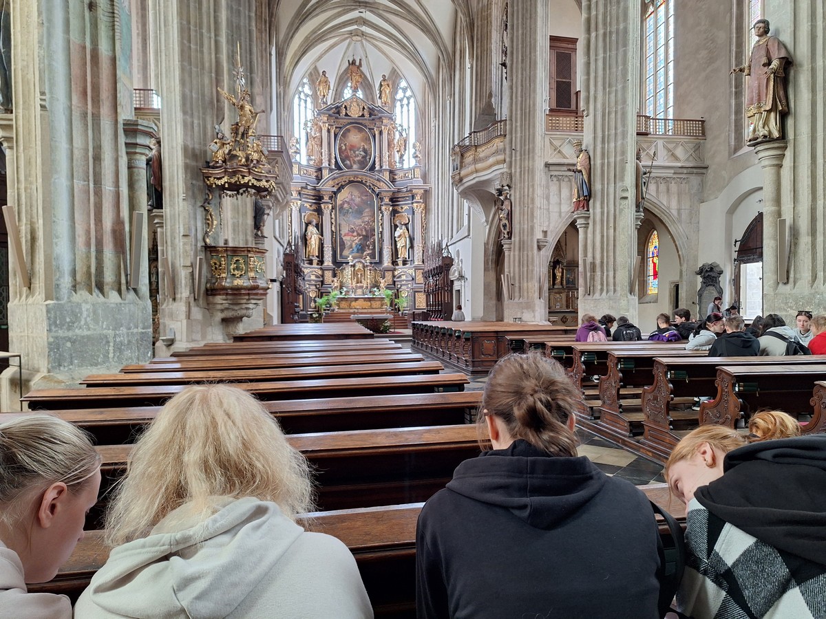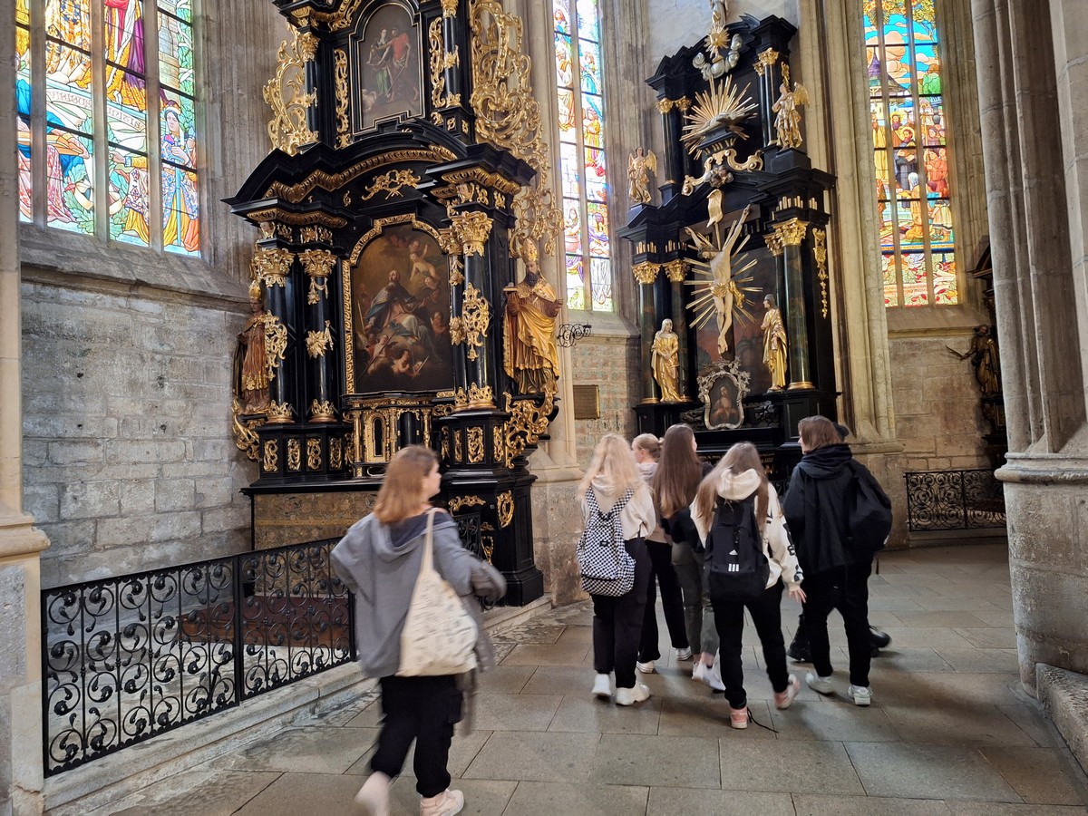 Dalším zastavením byl farní kostel sv. Jakuba. Žáci měli možnost porovnat stavební slohy, prvky, detaily a rozdíly v architektuře obou chrámů.
