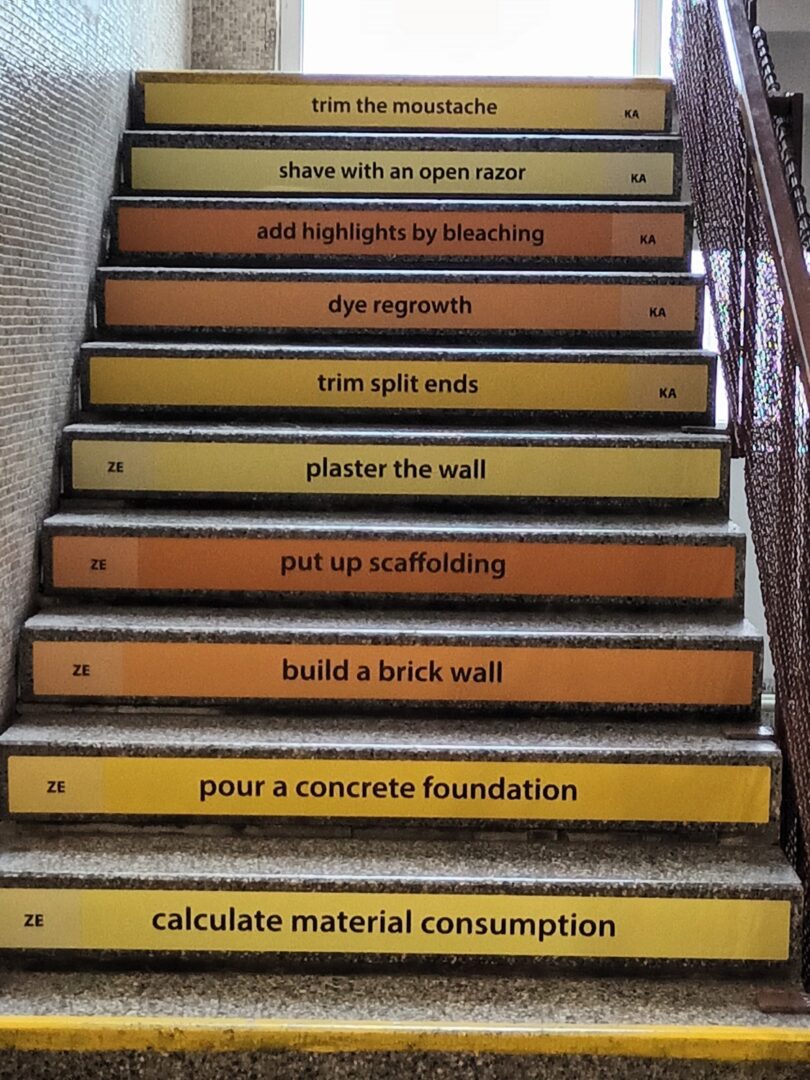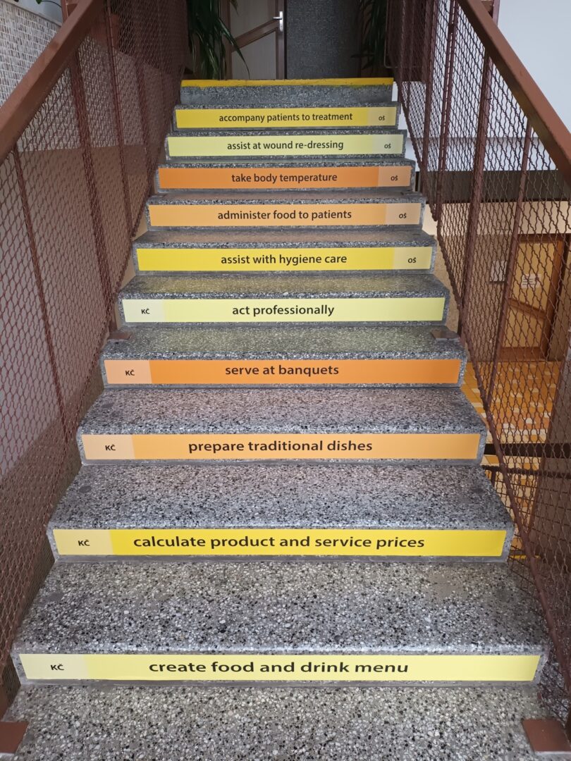 Ve vzdělávací budově Čáslavská 202 je jedno ze schodišť propojujících patra s většinou učeben nově opatřeno barevnými polepy schodů. Kromě toho, že se schodiště barevně rozzářilo, mají nyní žáci všech stávajících učebních i maturitních oborů možnost si každý den opakovat odbornou angličtinu, a to ve formě jednoduchých slovesných frází. Realizace polepů schodů byla poslední tečkou za jedním z malých projektů zaměřených na zlepšení prostředí pro výuku a trávení volného času.