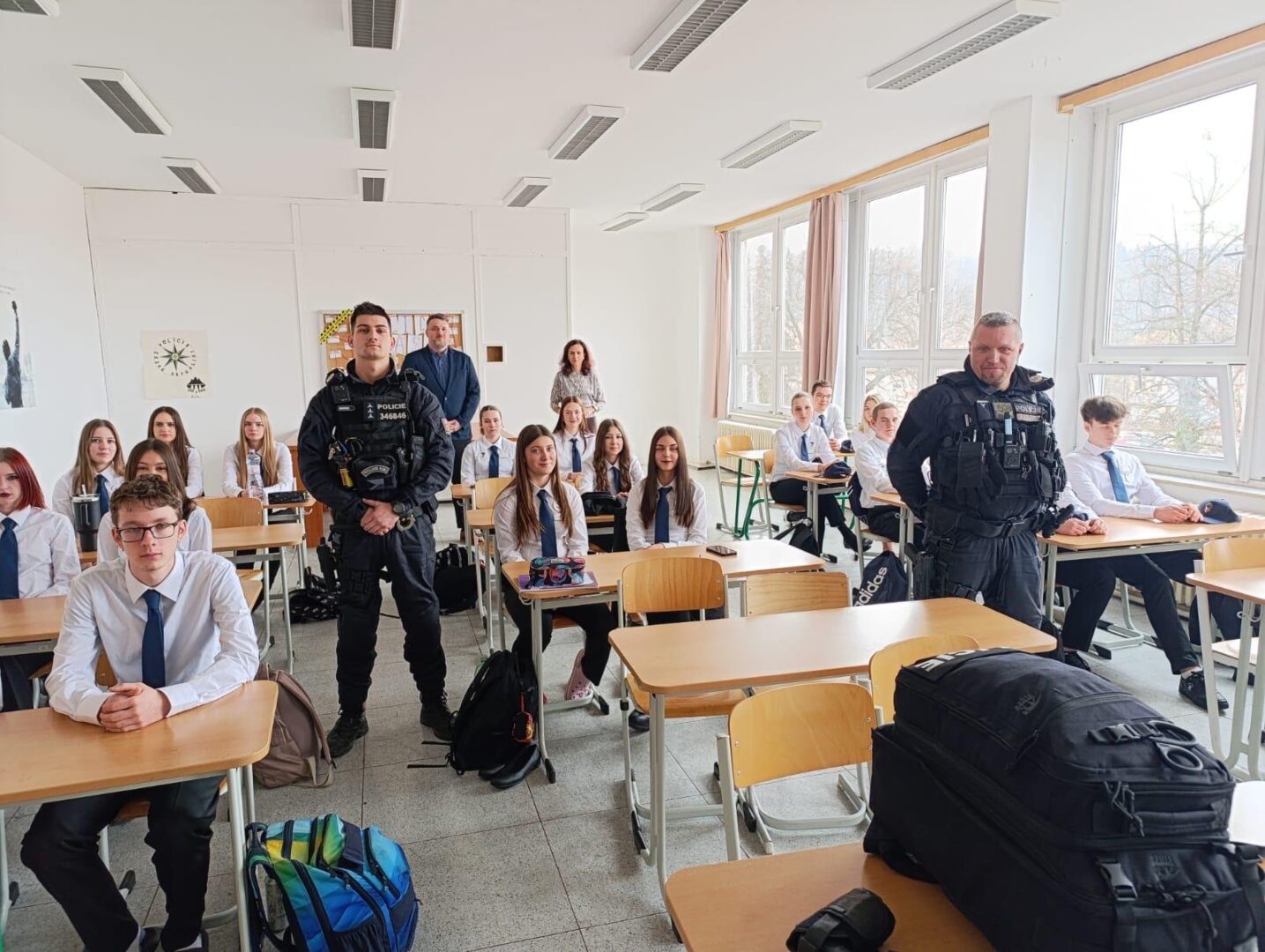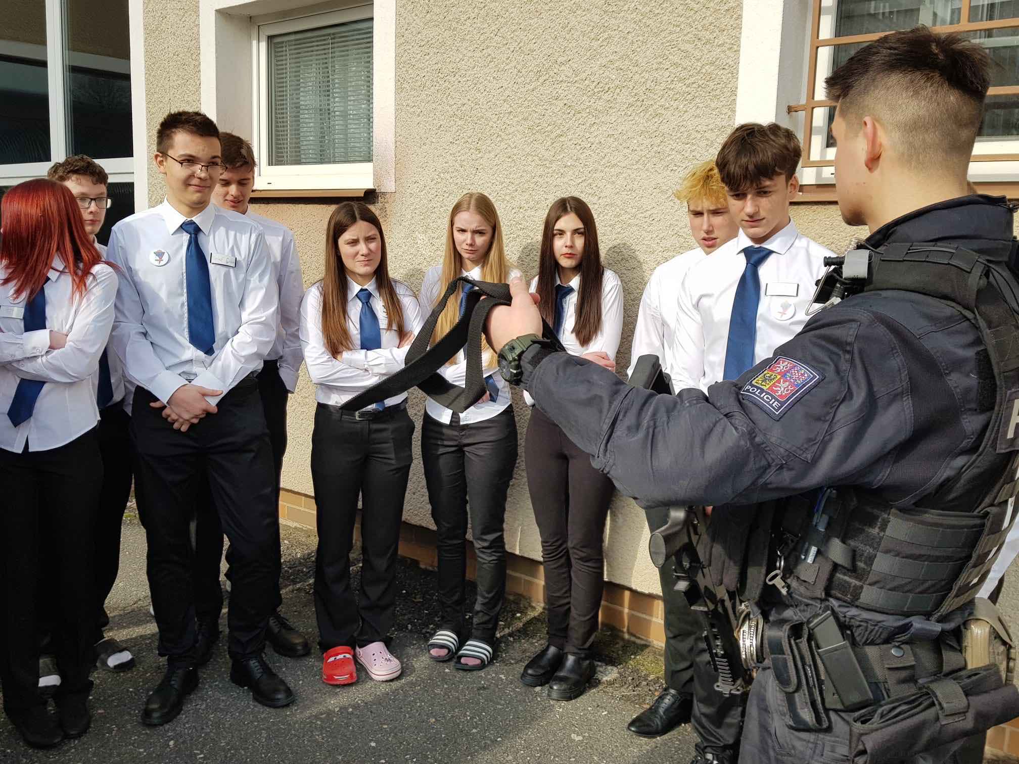 Besedu vedla zástupkyně Probační a mediační služby, která studentům přiblížila problematiku obětí trestné činnosti, jejich práva, možnosti pomoci i praktické zkušenosti z praxe. Výklad byl zaměřen především na propojení teoretických poznatků s reálnými případy. Následně příslušníci Policie ČR představili ukázku vybavení a techniky využívání v praxi. Studenti měli možnost se aktivně zapojit do diskuse, klást dotazy a získat odpovědi přímo od odborníků z praxe.