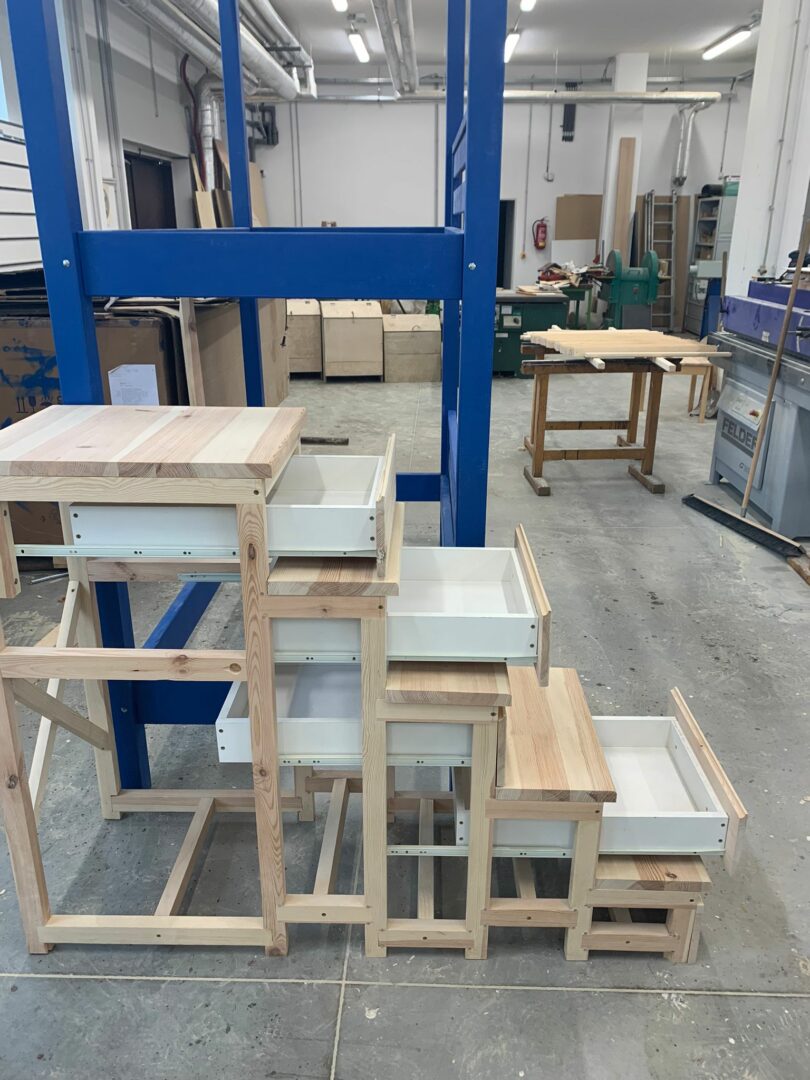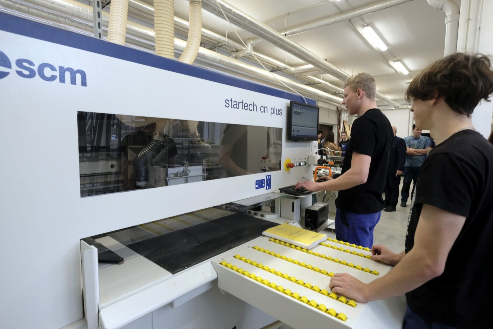 V nedávno zrekonstruované truhlářské dílně v Čáslavské ulici pro žáky 2. a 3. ročníku oboru truhlář, kteří při odborném výcviku pracují na truhlářských strojích se stále teď před Vánoci něco děje. Žáci zde vyrábí patrovou postel do dětského pokoje s vhodně řešenými schůdky. Dále zde probíhá rekonstrukce postýlek do školky ZŠ Hůrka Kutná Hora. Na videu v akci je také přesné vrtací, drážkovací a frézovací CNC centrum při výrobě korpusu skříňky z lamino desky.
