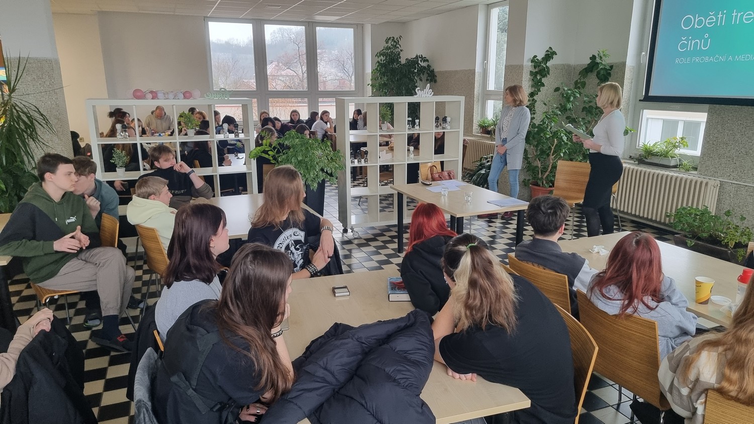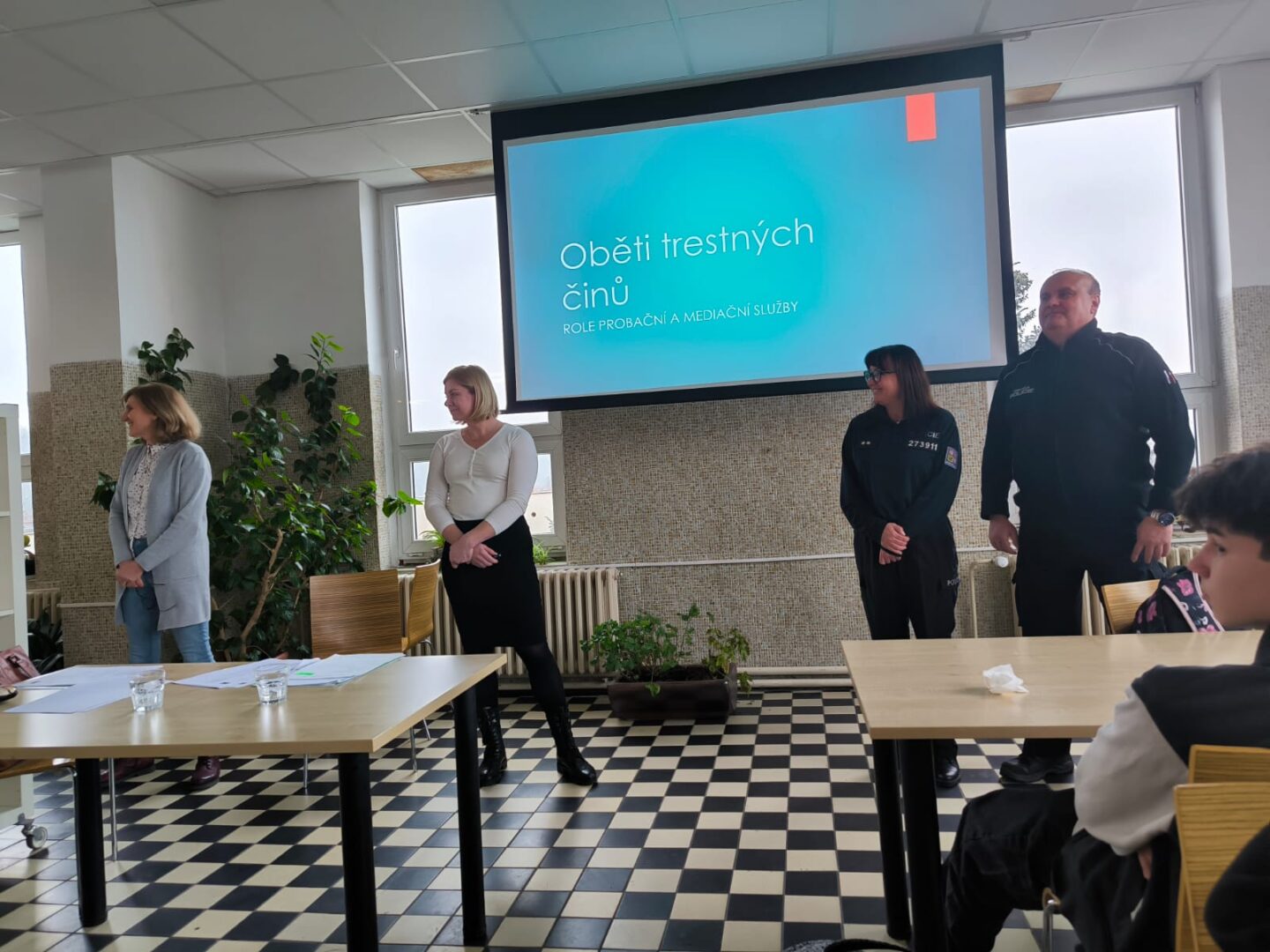 Probační a mediační služba spolu s policií dlouhodobě podporuje oběti a pomáhá jim vyrovnat se s těžkými situacemi. Se svou prací nás pracovníci seznámili na společném setkání se žáky školy a některými pedagogy.