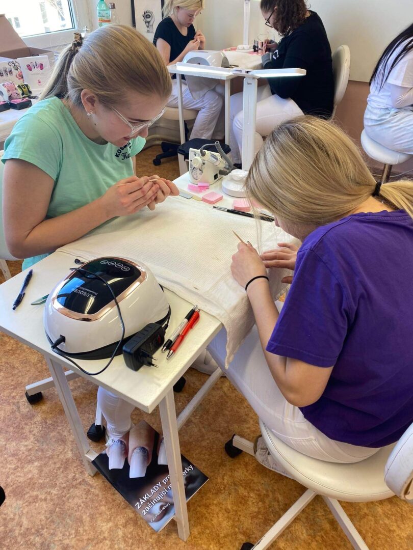 Dne 2.3.2023 proběhl na odborném výcviku kosmetiček kurz nehtové modeláže, pod vedením Fatimy El-Kholy. Během 8 hodinového kurzu se studentky naučily přístrojovou manikůru, gellak, stavbu nehtu na šablonu, salonní mandli, modeláž bez pilování, square. Studentky si z kurzu odnesly spoustu nových informací pro svoji možnou budoucí práci. Děkujeme lektorce Fatimě El-Kholy za vyčerpávající a zkušenostmi nabitý kurz.