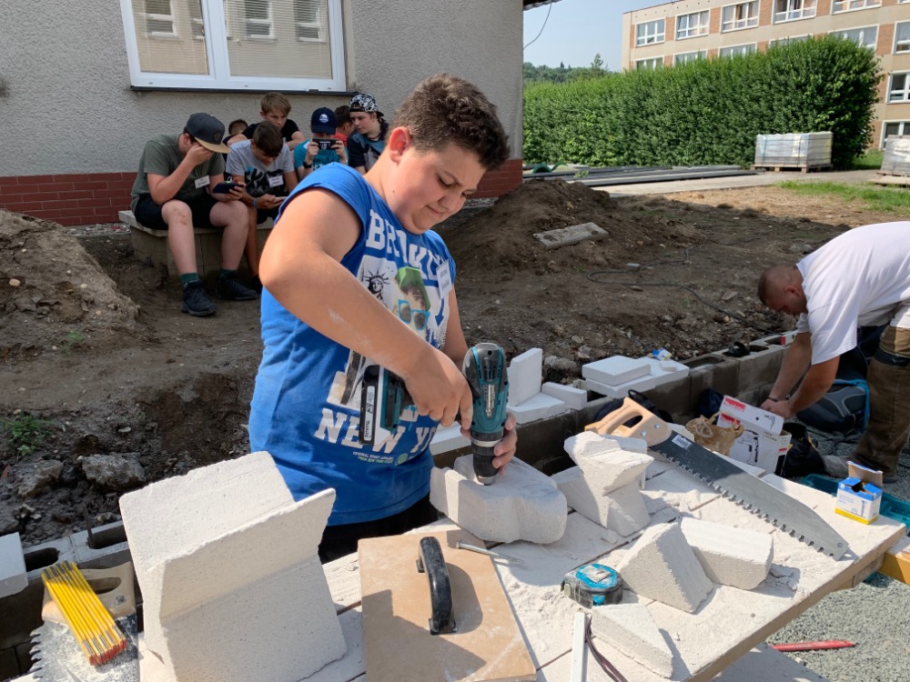 V úterý poznali stavařskou problematiku, viděli, jak se staví komín, jak se tvaruje stavební materiál a které omítky se nyní používají na omítnutí domů. Odpoledne zvládali různé kvízy, testy a sportovní soutěže za sladkou odměnu a pamětní medaile.