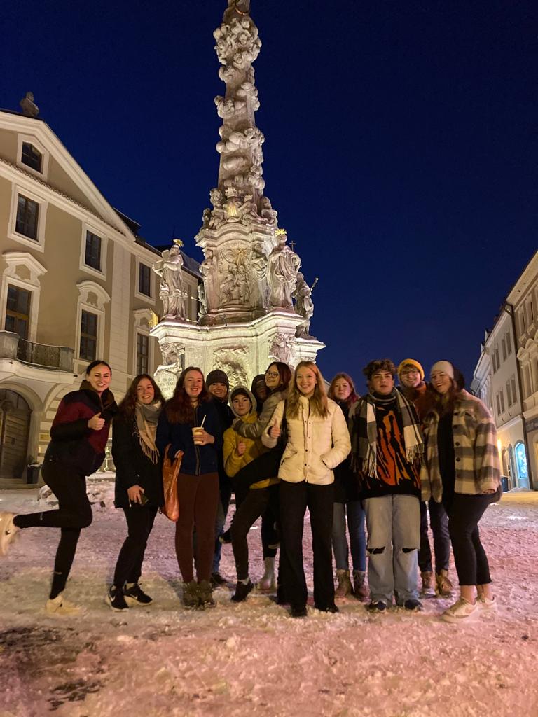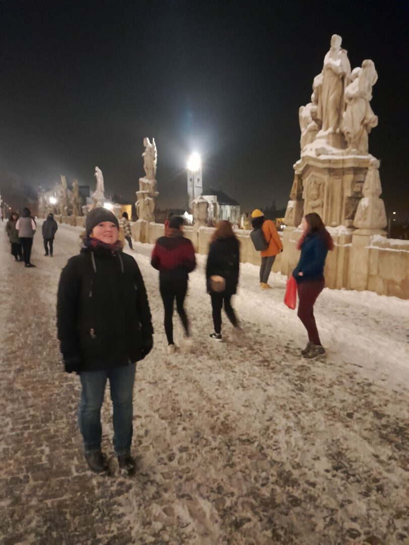 Děvčata se zahřála čajem, protože tento den patřil k nejchladnějším v prosinci. Sice jsme byli promrzlí, ale osvětlené výhledy na pohádkově zasněžené části historických památek okouzlily každého.