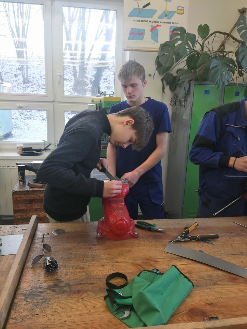 V minulém týdnu jsem díky příspěvku Nadace ČEZ realizovali další z atraktivních aktivit v rámci propagace vzdělávání v řemeslných oborech. Naší školu navštívilo na 100 žáků z pěti základních škol, aby si vyzkoušeli dovednosti různých profesí, které by mohla v blízké budoucnosti naplnit jejich další směr v přípravě na budoucí povolání. Pod vedení našich učitelů OV a za vydatné asistence našich současných žáků jsme připravili pestrý program v oborech strojní mechanik, truhlář, zedník, elektrikář, ošetřovatel nebo kuchař-číšník. žáci si v rámci každého zvoleného oboru prošli edukací a pak se sami pustili do práce a tak mnozí z nich po ukončení odcházeli v odpoledních hodinách s krásným výrobkem nebo žaludkem plných dobrot. Akce se setkala s velmi pozitivním ohlasem a všechny školy projevily zájem v těchto aktivitách pokračovat i v budoucnu. Za naši školu lze je konstatovat, že nás zájem ze základních škol těší, a že můžeme řemesla žákům škol ukázat a motivovat je k naplnění hesla “ Řemeslo má zlaté dno.“-KP-