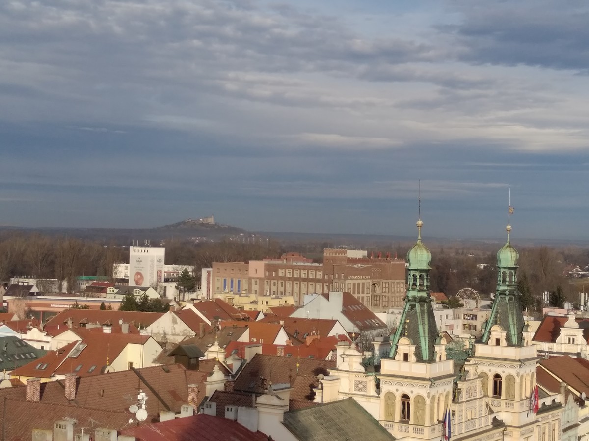 Dne 19.12. přálo počasí třídě KA 1 v předvánočních Pardubicích. Rozhled z výšky Zelené brány byl luxusní. Byla vidět i „Kuňka“.