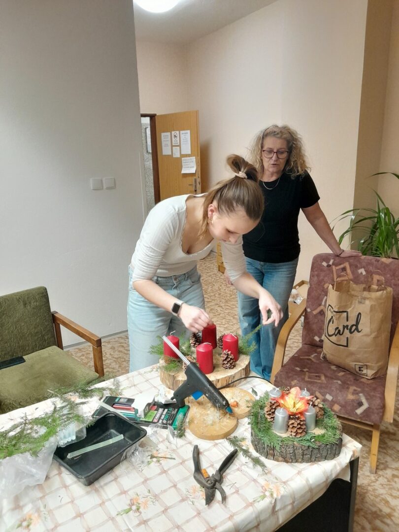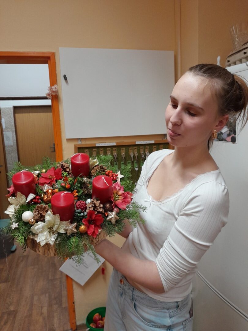 Včera jsme zapálili druhou svíčku na adventním věnci. Dívky na domově mládeže nám vyrobily krásné věnečky, které zdobí klubovnu, vychovatelnu a některé pokoje. Strávili jsme tak, příjemné předvánoční odpoledne.