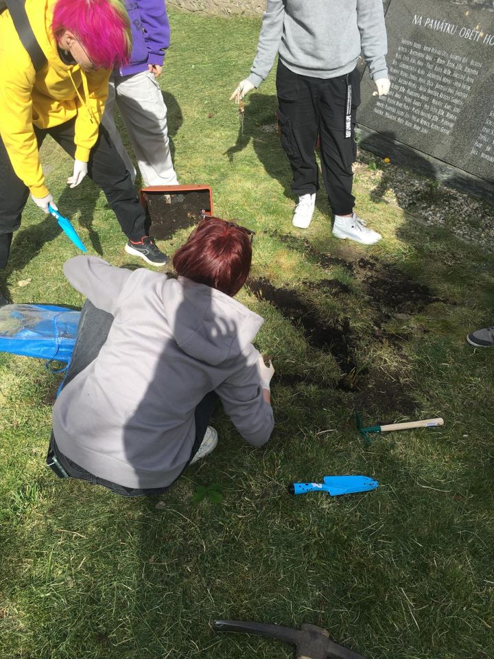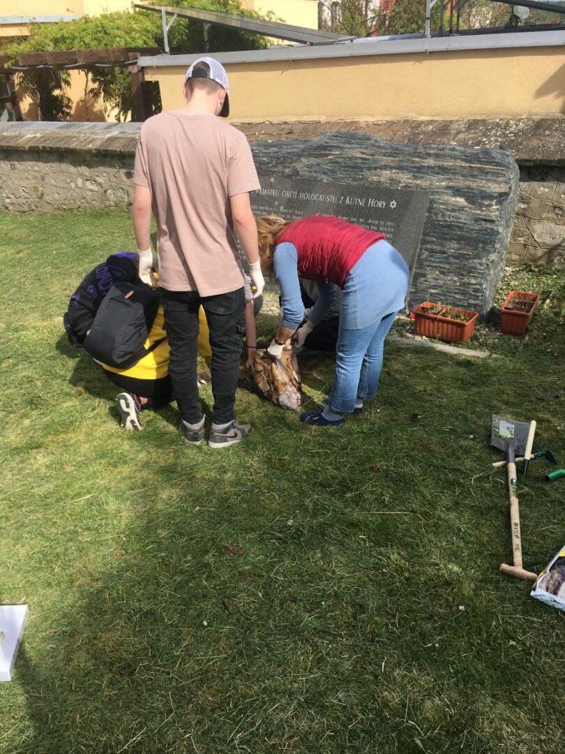 Studenti vysázeli krokusy ve tvaru židovské hvězdy před židovskou synagogou v Kutné Hoře ve Smíškově ulici. V příštím roce krokusy vykvetou do krásné žluté barvy.