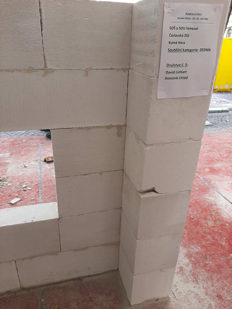Naši žáci Dominik Chlád a David Linhart ze 3. ročníku oboru zedník úspěšně reprezentovali naši školu a umístili se v konkurenci 11 škol na krásném 5. místě. Soutěž byla dvoudenní pro dvoučlenná družstva žáků z každé školy, kdy 1. den v celkové dotaci 8 hodin žáci prováděli zdění fragmentu, podle soutěžního zadání z materiálů od společností YTONG a HELUZ. Další den soutěžní týmy pokračovaly v provádění jádrové omítky na stavbě HELUZ a zateplení nosné konstrukce YTONG vnějším zateplovacím systémem od výrobců ISOVER a Baumit (v celkové dotaci 5 hodin). Děkujeme žákům za reprezentaci školy a UOV p. Milanovi Patákovi za odbornou přípravu na tuto náročnou soutěž.