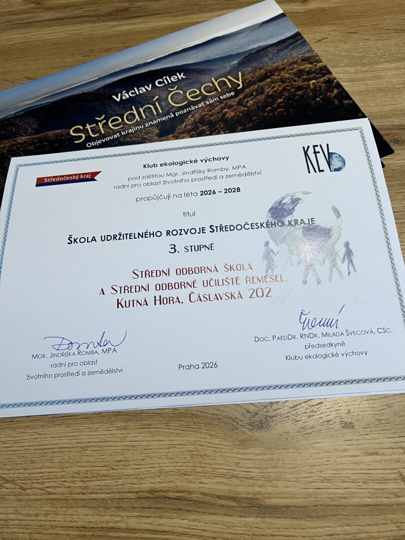 Středočeského kraje. SOŠ a SOU řemesel Kutná Hora získala poprvé toto prestižní ocenění.