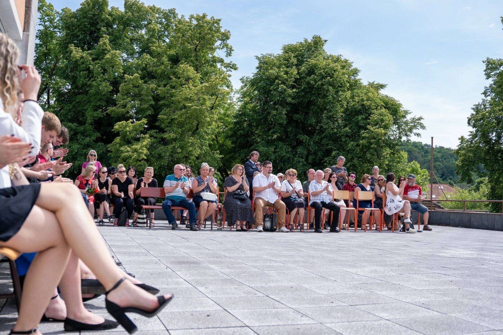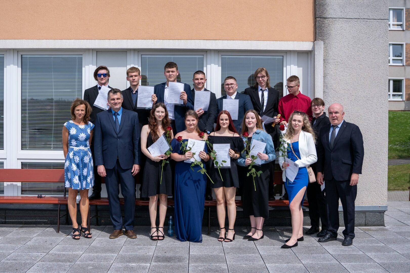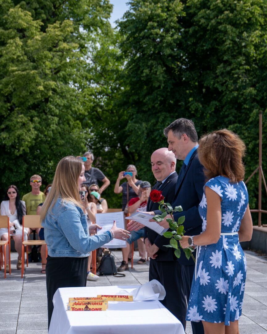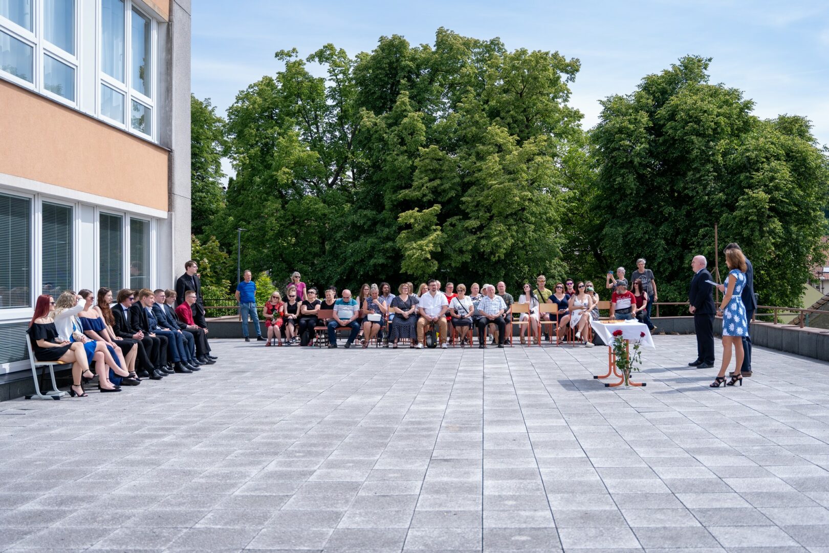 Krásné slunné počasí s výhledem na historickou část města, podtrhlo radostnou atmosféru slavnostního odpoledne v naší škole. Studijní léta skončila a začíná dospělý život. Hodně štěstí.