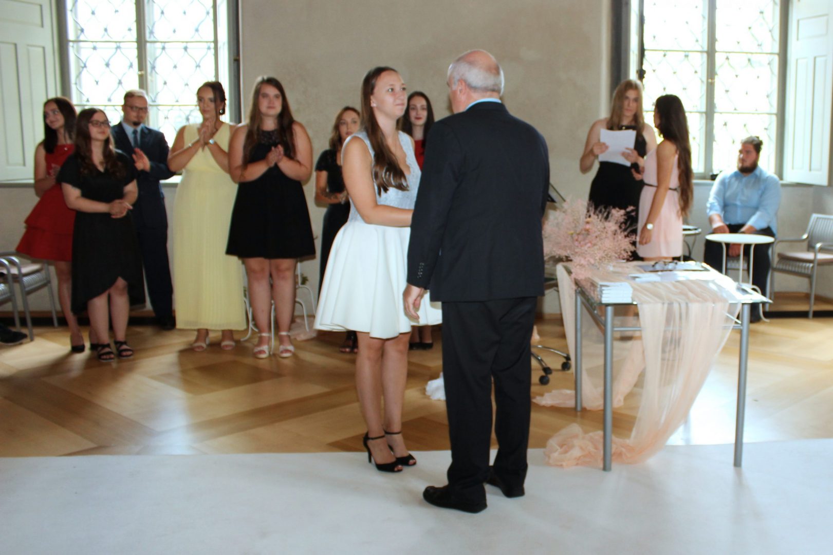Krásnou ukázku vyspělosti a zralosti předvedli studenti závěrečných ročníků při slavnostním předávání maturitních vysvědčení v poslední den školního roku 2020/2021. Slavnostní ceremonie byla dokonale připravena studentkami oboru veřejná správa, za což jim náleží velké poděkování. Absolventi oborů veřejnosprávní činnost, sociální činnost a podnikání se důstojně rozloučili se svými kantory v nádherných prostorách refektáře Jezuitské koleje.