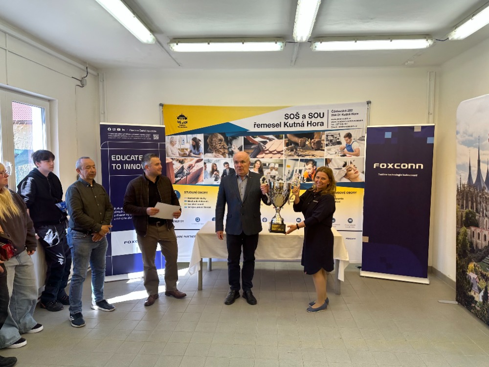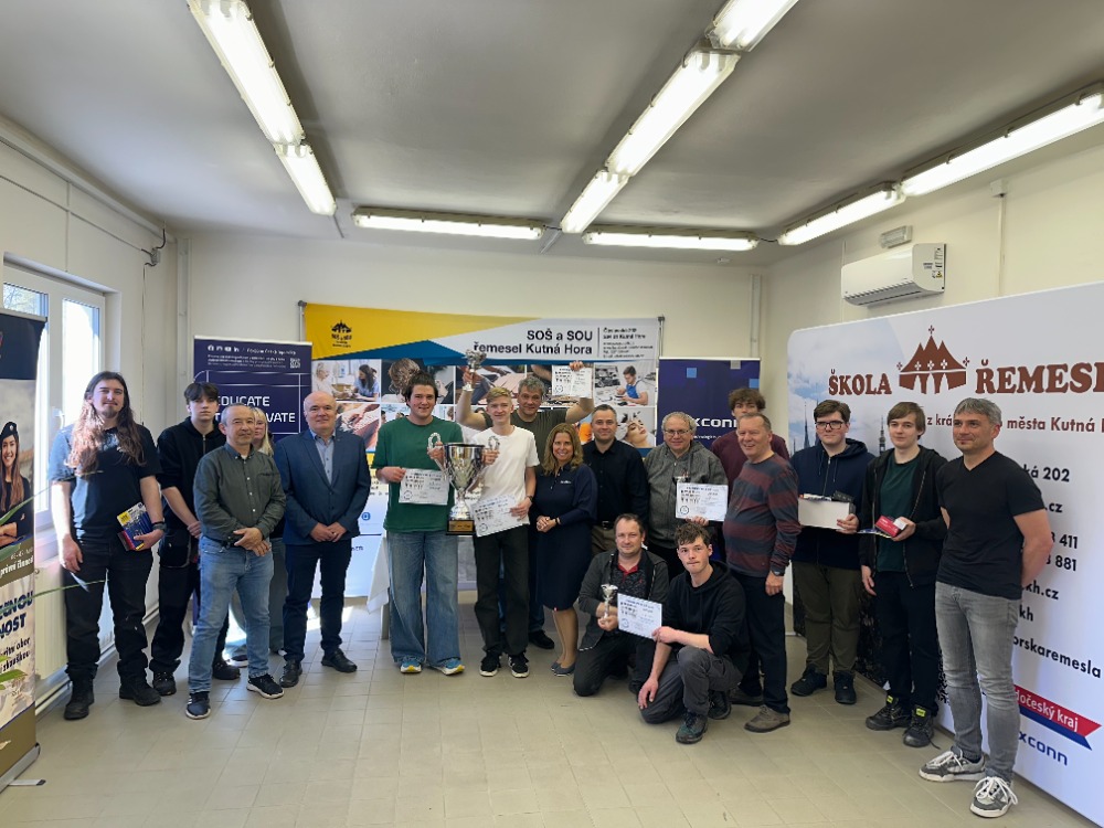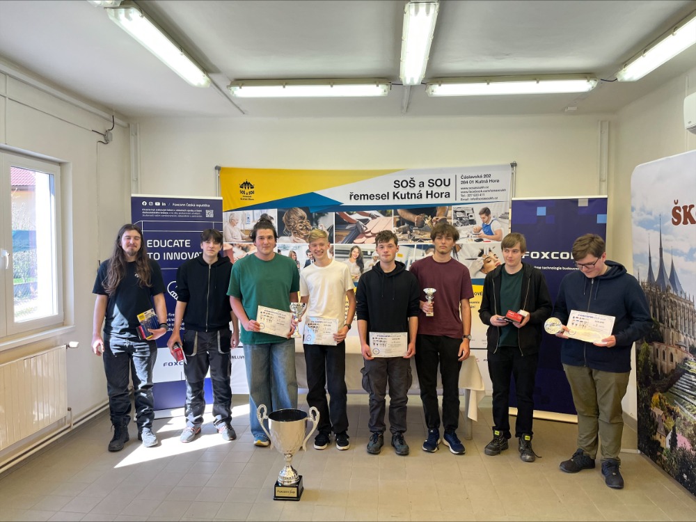 Ve dnech 8. 4. a 9. 4. 2026 se uskutečnil 7. ročník soutěže FOXCONN CUP 2026. SOŠ a SOU řemesel Kutná Hora ve spolupráci se společností Foxconn Technology CZ s.r.o. uspořádala soutěž pro žáky, kteří se aktivně věnují elektrotechnice. Během dvou dnů plnili úkoly, které jim připravili organizátoři soutěže. Museli prokázat nejen teoretické znalosti, ale zejména předvést své manuální dovednosti a zručnosti z oboru. Celkem soutěžily čtyři školy, které reprezentovalo družstvo složené vždy ze dvou soutěžících. Po sečtení bodů z obou soutěžních dnů se stanovila výsledková listina, kdy se vyhodnotilo nejprve umístění jednotlivců a následně i pořadí družstev. S velkým bodovým ziskem se stal vítězem student Jan Němec z VOŠ a SPŠ a JŠ Kutná Hora. Za naši školu soutěžili Jan Jelínek a Petr Skalický. Jan Jelínek se umístil v soutěži jednotlivců na krásném druhém místě. V celkovém součtu bodů se družstvo SOŠ a SOU řemesel Kutná Hora umístilo také na druhém místě.  Děkujeme za výbornou reprezentaci školy a gratulujeme!