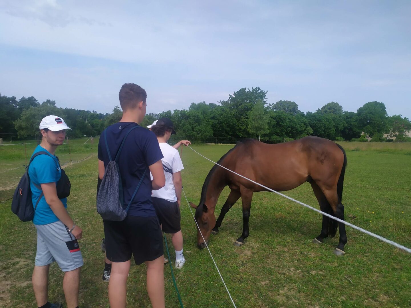 Ve dnech 19.6.-23.6.2023 jsme s třídou KM3 absolvovali sportovně turistický kurz v rekreačním areálu ve Zbraslavicích. Počasí nám přálo a sportovní aktivity byly fajn- ověřili jsme si své pohybové schopnosti. Byli jsme na několika túrách, svezli se na koních, vyřádili se ve vodě na paddle boardech, vyzkoušeli si svou sílu na horolezecké stěně a odvahu na vysokých lanech. Dozvěděli se o sobě víc u večerního táboráku a shlédli krásný park a zámek ve Zruči nad Sázavou. Areál poskytuje i tělocvičny pro případ špatného počasí a personál je skvělý a vychází každému maximálně vstříc. Proto moc děkujeme a zase někdy na shledanou.