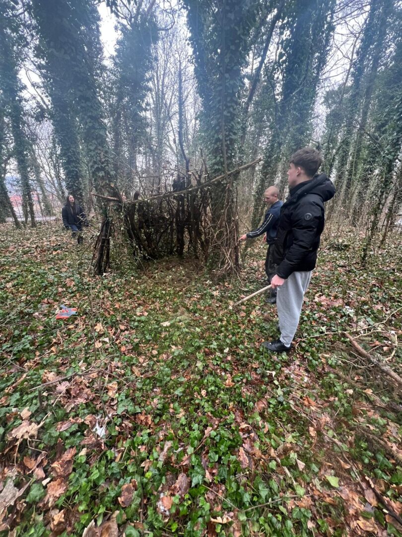 Třída BP1 dnes absolvovala terénní výcvik, během kterého si žáci vyzkoušeli stavbu improvizovaného přístřešku z přírodních materiálů. Aktivita navazovala na předmět Ochrana obyvatelstva, kde se tomuto tématu věnovali nejprve teoreticky.