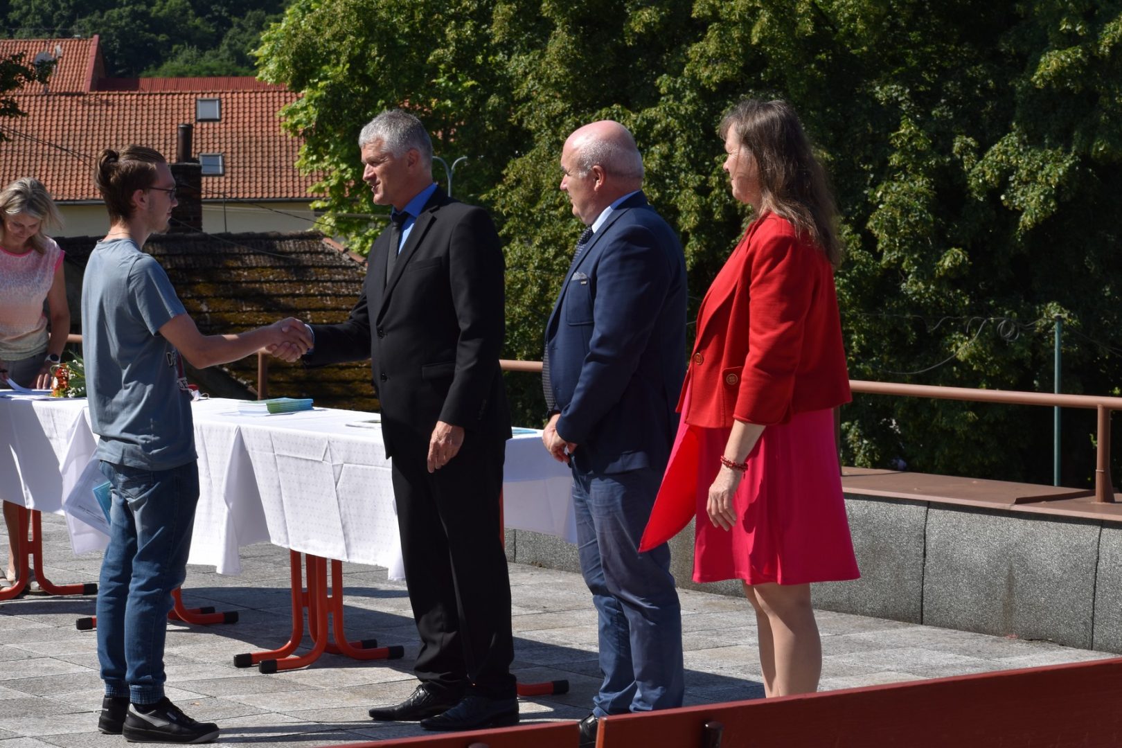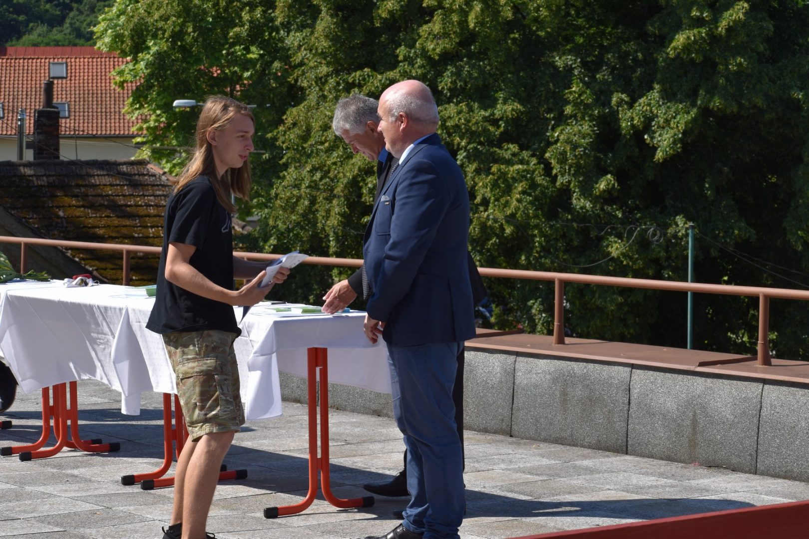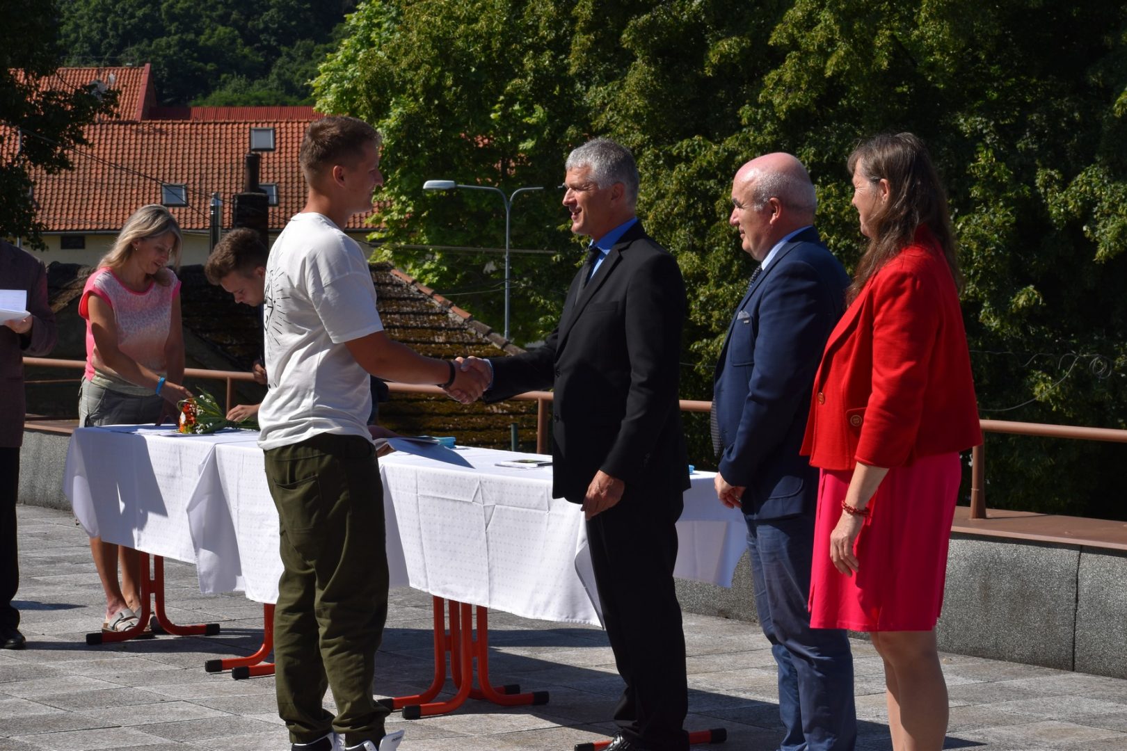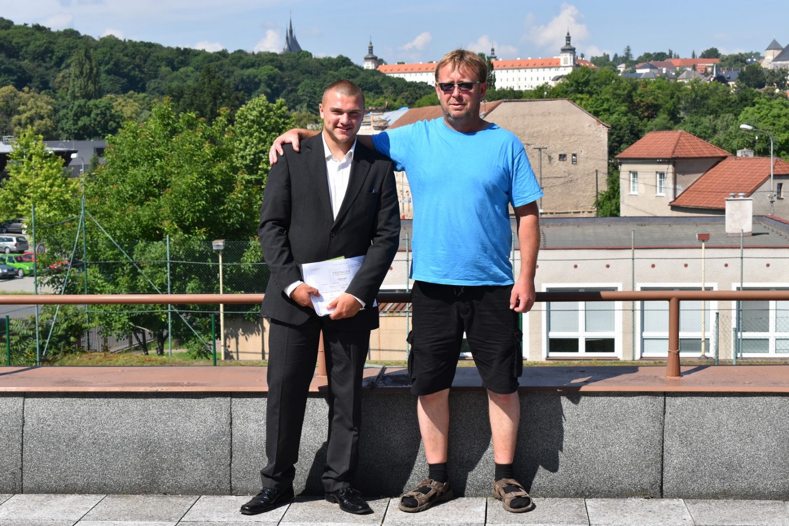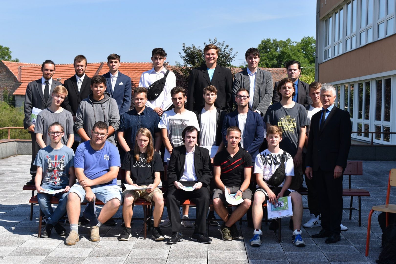 Dnes 16. července 2021 od 10 hod. proběhlo slavnostní předávání výučných listů a vysvědčení o závěrečné zkoušce našim absolventům tříletých učebních oborů elektrikář, kuchař-číšník, pokrývač, strojní mechanik, truhlář a zedník na terase vzdělávací budovy Čáslavská 202. Letošní školní rok byl velice složitý a náročný, což všichni víme moc dobře. Většina výuky ve školním roce probíhala distančním způsobem. Když už se dostali žáci v květnu 2021 do školy na prezenční výuku, využil ředitel školy možnost prodloužit výuku (především odborného výcviku) do letních prázdnin. Celkem se výuka prodloužila oproti minulým letům o jeden měsíc. Tím se podařilo učitelům odborných předmětů a odborného výcviku udržet úroveň získaných kompetenci budoucích řemeslníků v požadované kvalitě. Jednotliví absolventi tedy nebudou určitě zklamaní, že na výučním listu mají uvedený covidový školní rok 2020-2021. O všem hovoří výsledky, kdy ze 65 úspěšných absolventů prospělo s vyznamenáním 20 žáků. Velké díky patří všem vyučujícím, kteří se podíleli na prodlouženém školním roce 2020-2021.