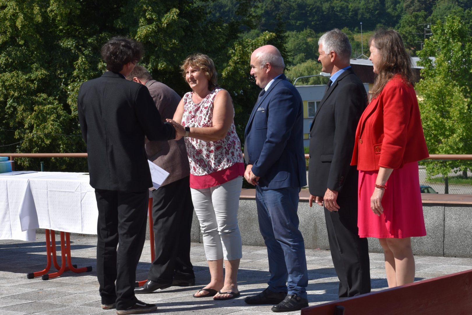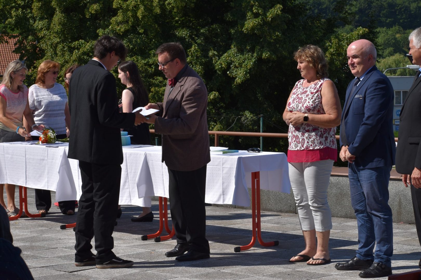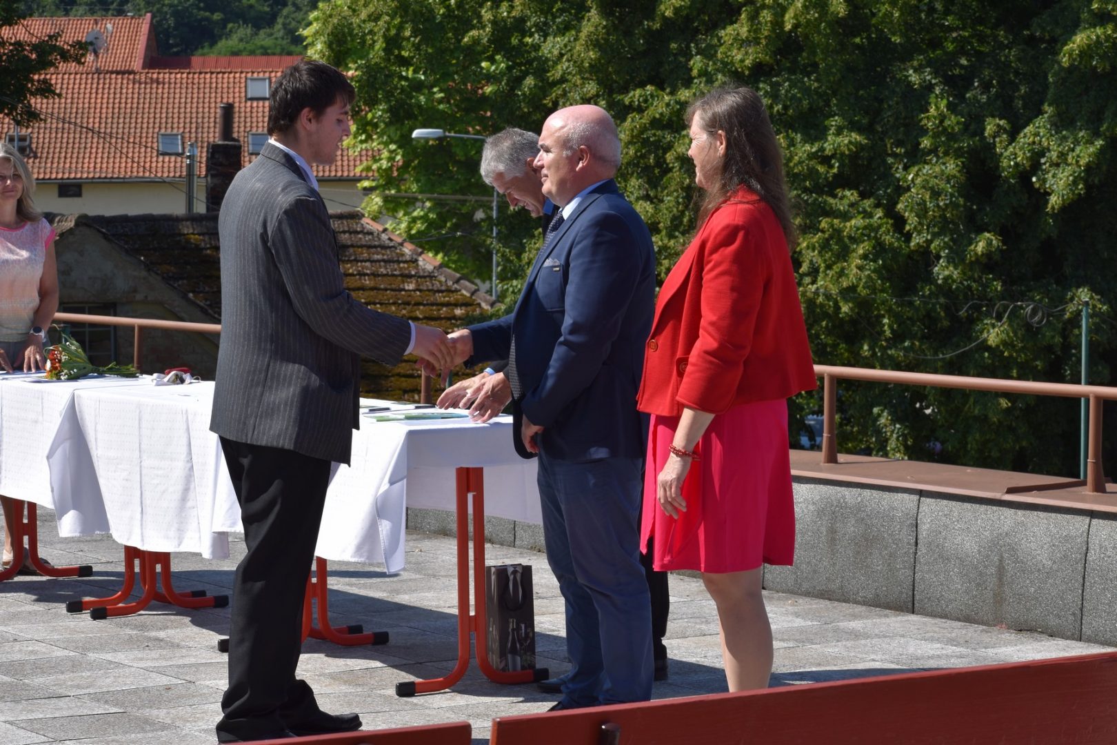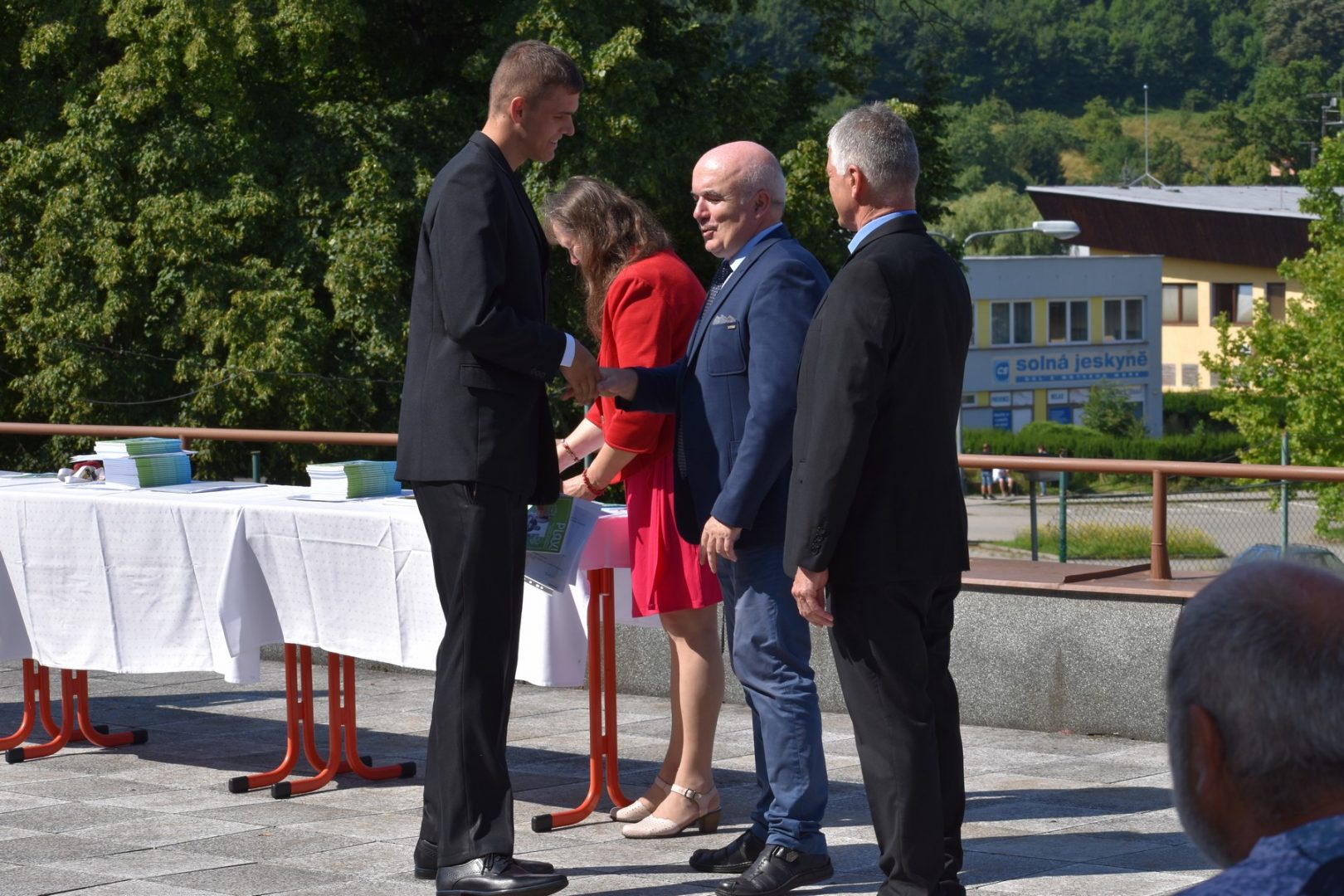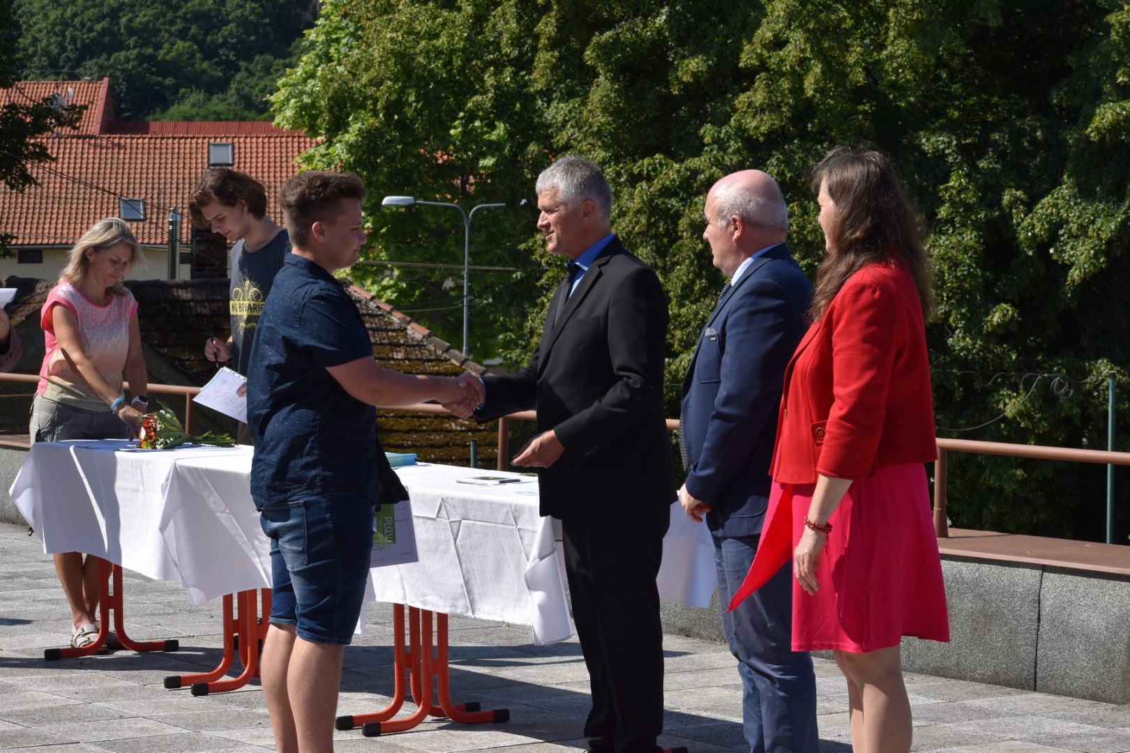 Dnes 16. července 2021 od 10 hod. proběhlo slavnostní předávání výučných listů a vysvědčení o závěrečné zkoušce našim absolventům tříletých učebních oborů elektrikář, kuchař-číšník, pokrývač, strojní mechanik, truhlář a zedník na terase vzdělávací budovy Čáslavská 202. Letošní školní rok byl velice složitý a náročný, což všichni víme moc dobře. Většina výuky ve školním roce probíhala distančním způsobem. Když už se dostali žáci v květnu 2021 do školy na prezenční výuku, využil ředitel školy možnost prodloužit výuku (především odborného výcviku) do letních prázdnin. Celkem se výuka prodloužila oproti minulým letům o jeden měsíc. Tím se podařilo učitelům odborných předmětů a odborného výcviku udržet úroveň získaných kompetenci budoucích řemeslníků v požadované kvalitě. Jednotliví absolventi tedy nebudou určitě zklamaní, že na výučním listu mají uvedený covidový školní rok 2020-2021. O všem hovoří výsledky, kdy ze 65 úspěšných absolventů prospělo s vyznamenáním 20 žáků. Velké díky patří všem vyučujícím, kteří se podíleli na prodlouženém školním roce 2020-2021.