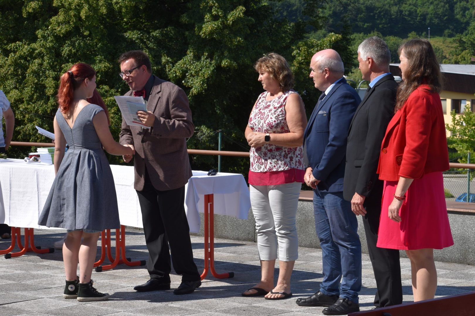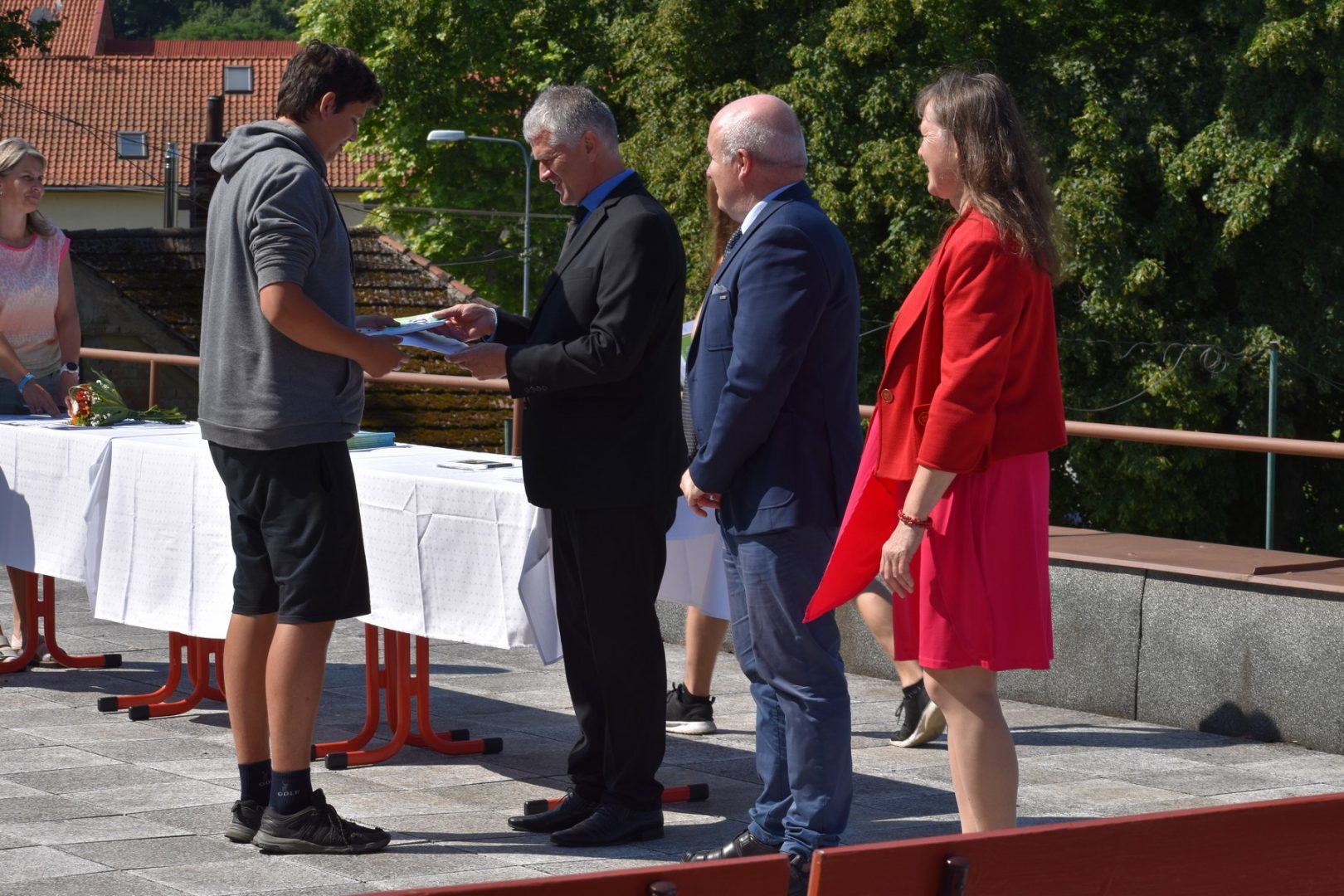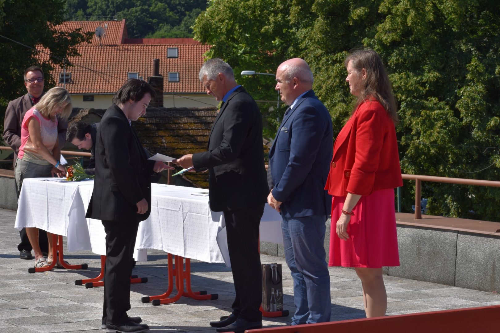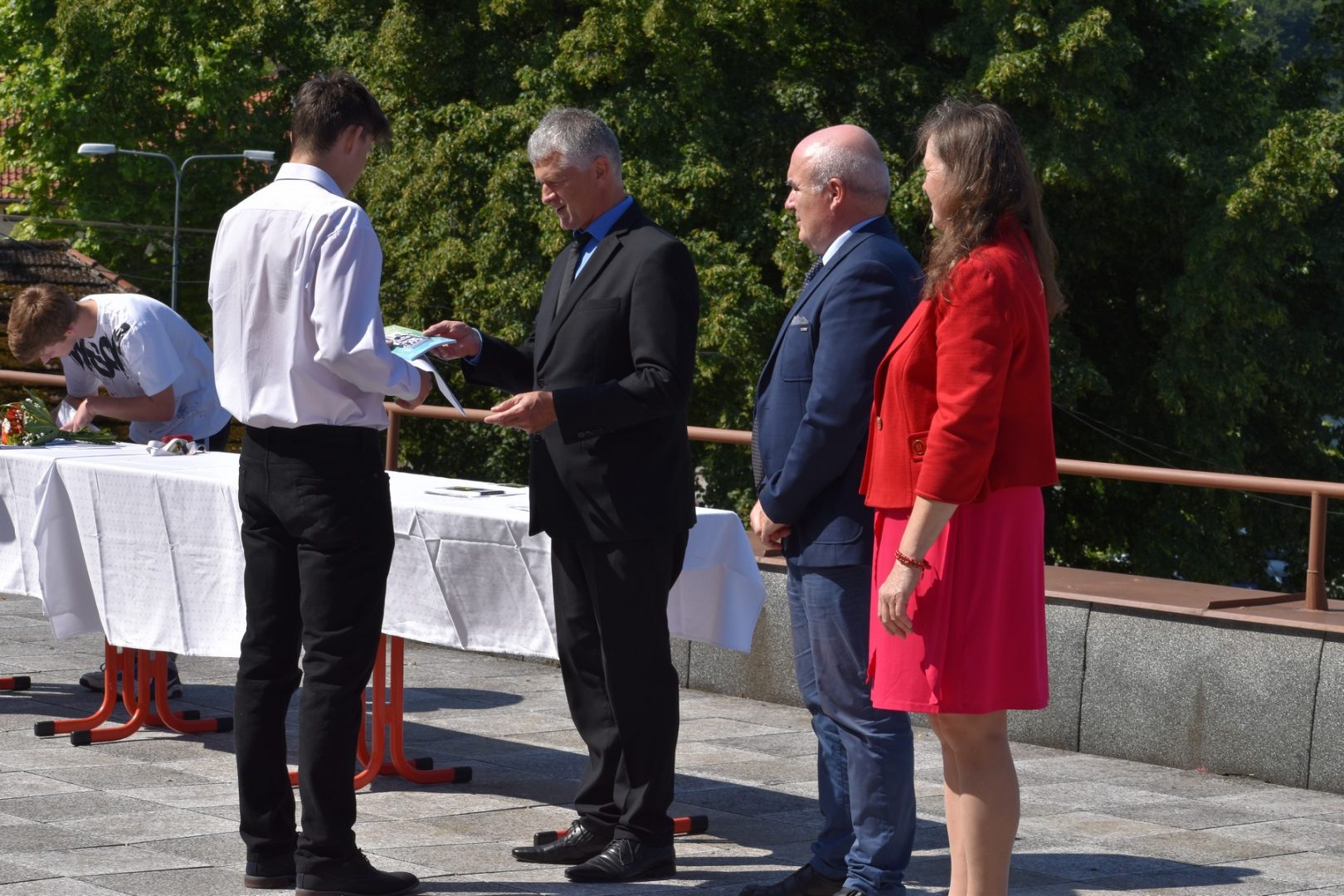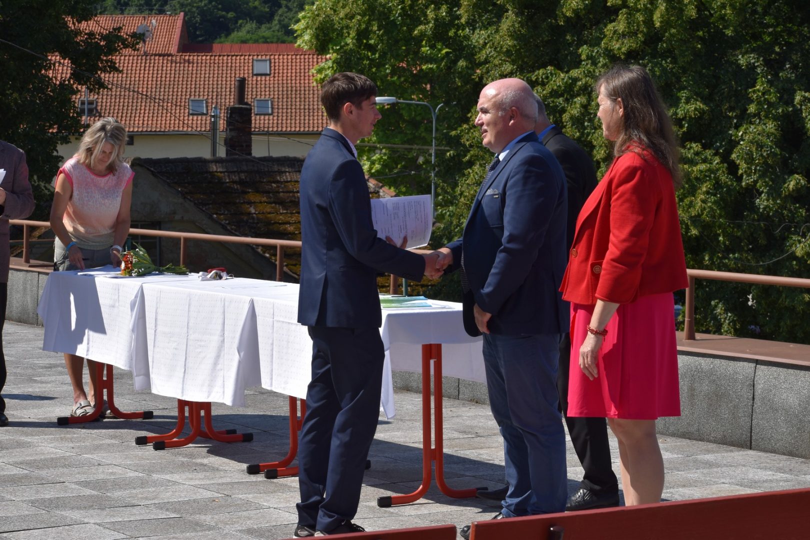 Dnes 16. července 2021 od 10 hod. proběhlo slavnostní předávání výučných listů a vysvědčení o závěrečné zkoušce našim absolventům tříletých učebních oborů elektrikář, kuchař-číšník, pokrývač, strojní mechanik, truhlář a zedník na terase vzdělávací budovy Čáslavská 202. Letošní školní rok byl velice složitý a náročný, což všichni víme moc dobře. Většina výuky ve školním roce probíhala distančním způsobem. Když už se dostali žáci v květnu 2021 do školy na prezenční výuku, využil ředitel školy možnost prodloužit výuku (především odborného výcviku) do letních prázdnin. Celkem se výuka prodloužila oproti minulým letům o jeden měsíc. Tím se podařilo učitelům odborných předmětů a odborného výcviku udržet úroveň získaných kompetenci budoucích řemeslníků v požadované kvalitě. Jednotliví absolventi tedy nebudou určitě zklamaní, že na výučním listu mají uvedený covidový školní rok 2020-2021. O všem hovoří výsledky, kdy ze 65 úspěšných absolventů prospělo s vyznamenáním 20 žáků. Velké díky patří všem vyučujícím, kteří se podíleli na prodlouženém školním roce 2020-2021.