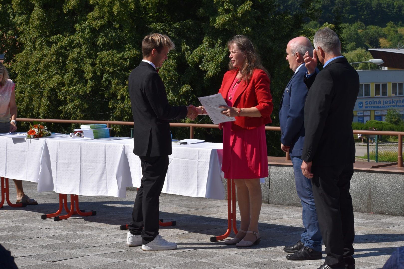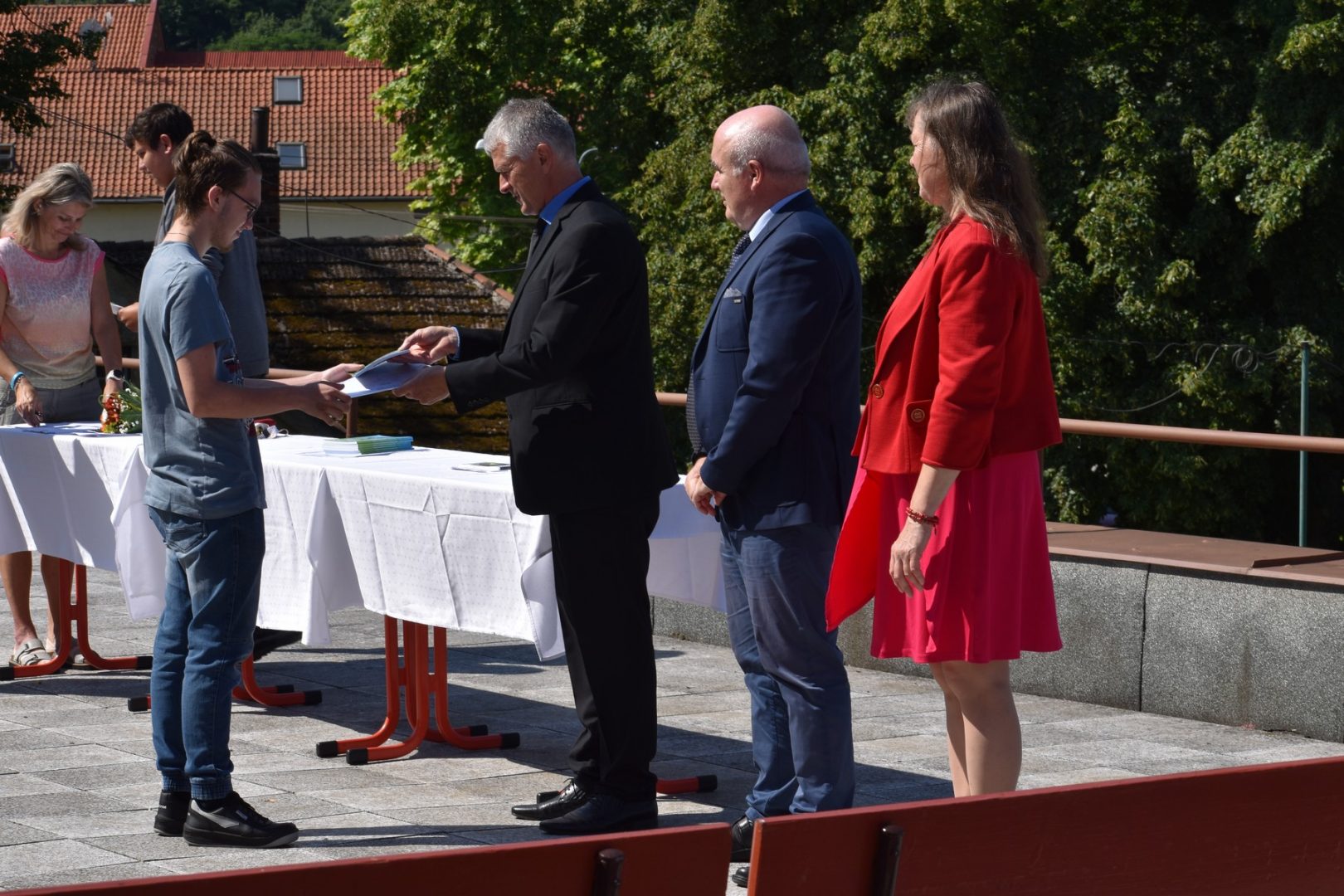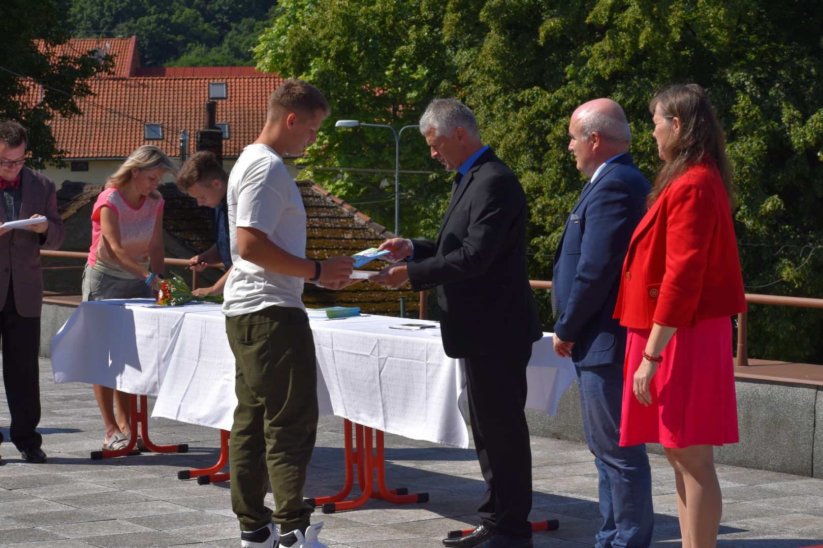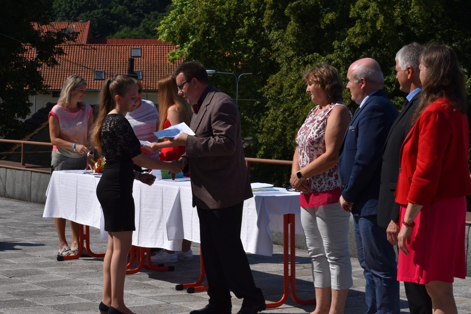 Dnes 16. července 2021 od 10 hod. proběhlo slavnostní předávání výučných listů a vysvědčení o závěrečné zkoušce našim absolventům tříletých učebních oborů elektrikář, kuchař-číšník, pokrývač, strojní mechanik, truhlář a zedník na terase vzdělávací budovy Čáslavská 202. Letošní školní rok byl velice složitý a náročný, což všichni víme moc dobře. Většina výuky ve školním roce probíhala distančním způsobem. Když už se dostali žáci v květnu 2021 do školy na prezenční výuku, využil ředitel školy možnost prodloužit výuku (především odborného výcviku) do letních prázdnin. Celkem se výuka prodloužila oproti minulým letům o jeden měsíc. Tím se podařilo učitelům odborných předmětů a odborného výcviku udržet úroveň získaných kompetenci budoucích řemeslníků v požadované kvalitě. Jednotliví absolventi tedy nebudou určitě zklamaní, že na výučním listu mají uvedený covidový školní rok 2020-2021. O všem hovoří výsledky, kdy ze 65 úspěšných absolventů prospělo s vyznamenáním 20 žáků. Velké díky patří všem vyučujícím, kteří se podíleli na prodlouženém školním roce 2020-2021.