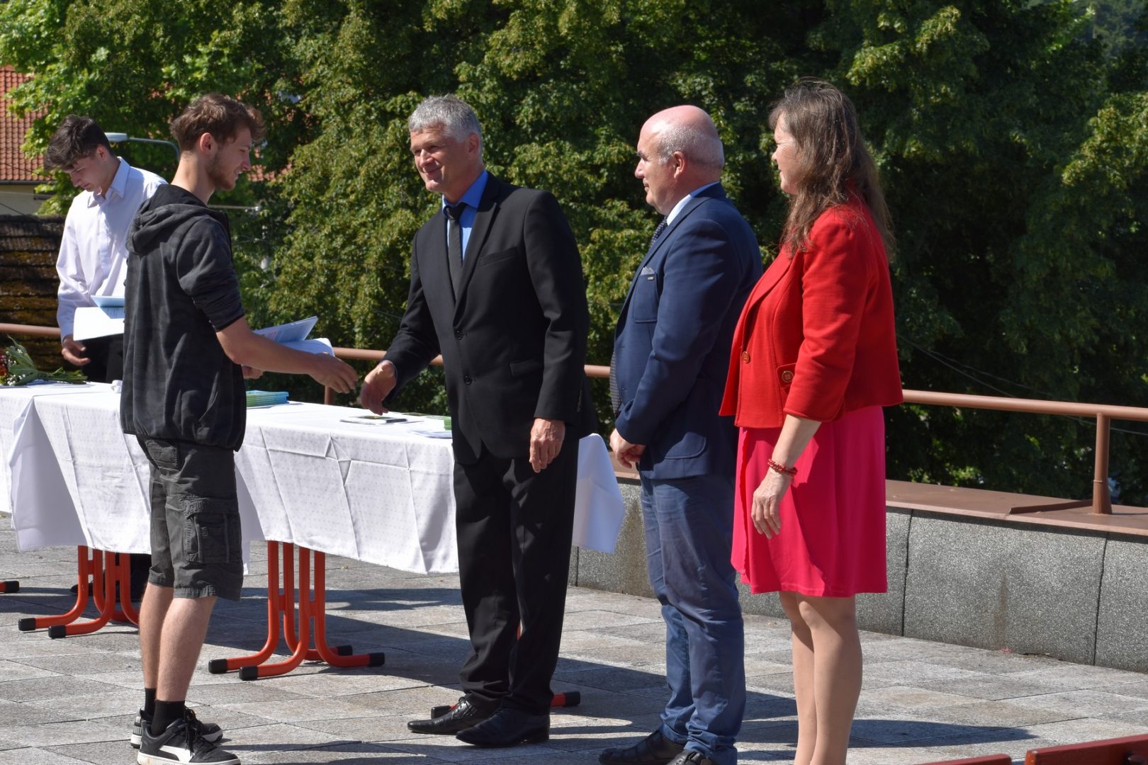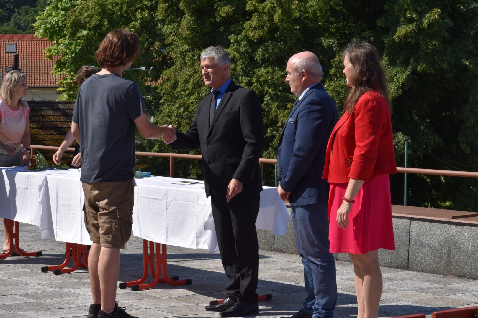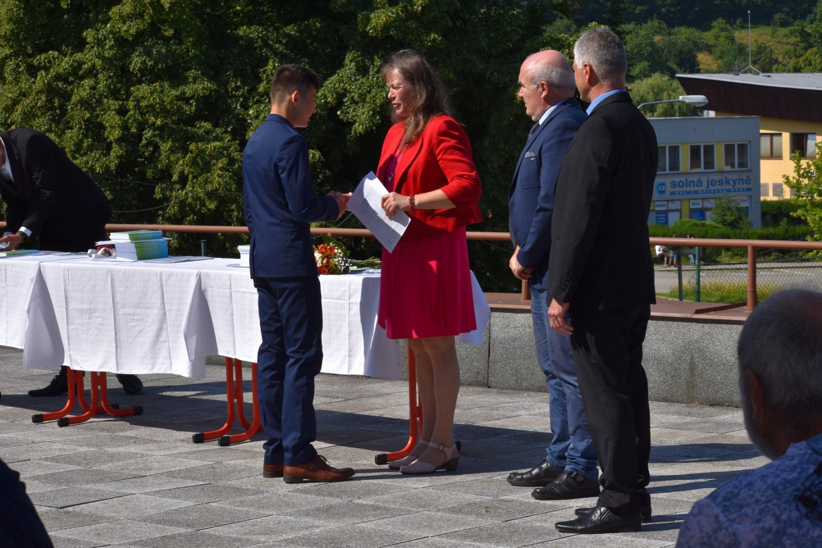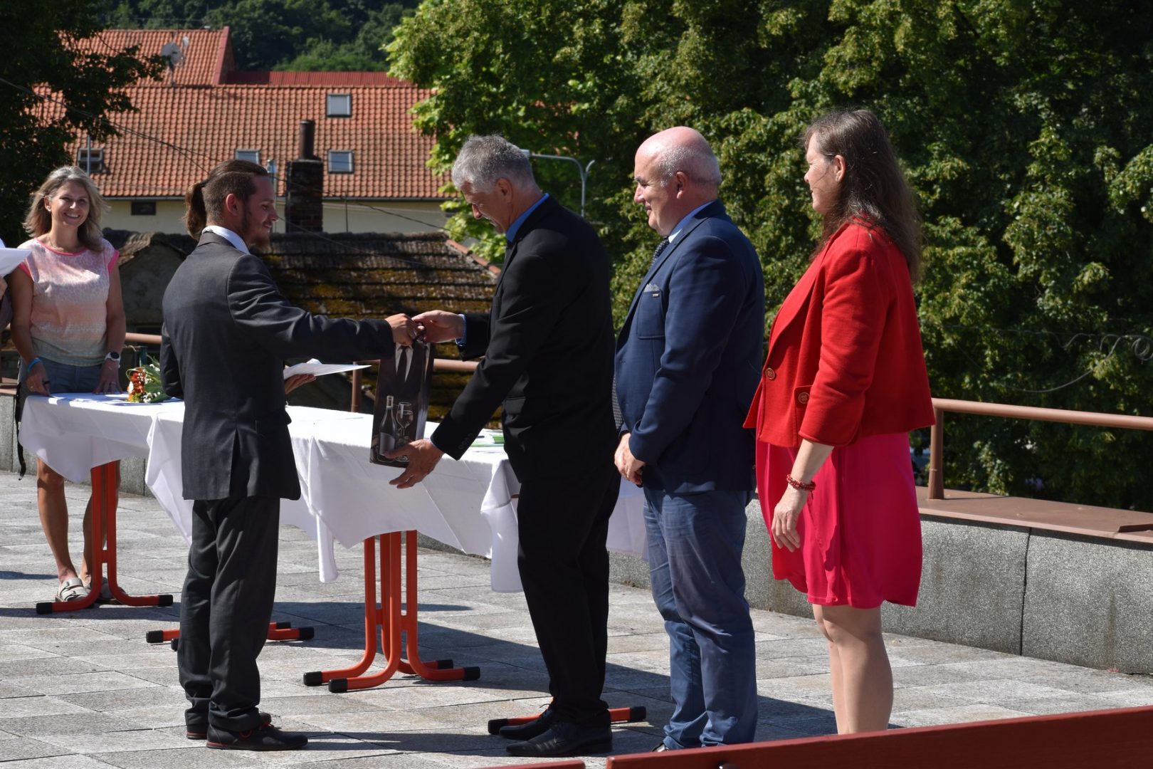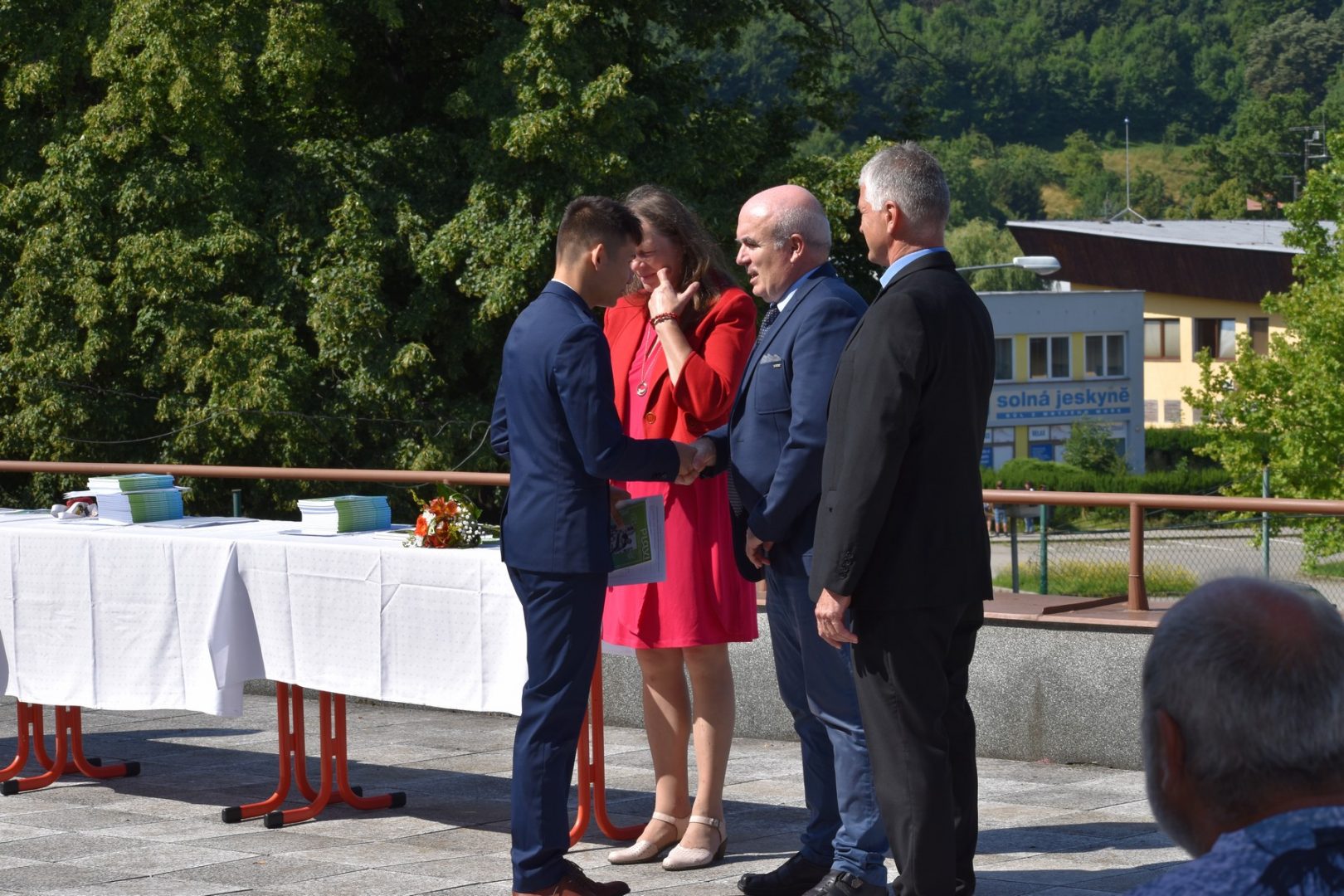 Dnes 16. července 2021 od 10 hod. proběhlo slavnostní předávání výučných listů a vysvědčení o závěrečné zkoušce našim absolventům tříletých učebních oborů elektrikář, kuchař-číšník, pokrývač, strojní mechanik, truhlář a zedník na terase vzdělávací budovy Čáslavská 202. Letošní školní rok byl velice složitý a náročný, což všichni víme moc dobře. Většina výuky ve školním roce probíhala distančním způsobem. Když už se dostali žáci v květnu 2021 do školy na prezenční výuku, využil ředitel školy možnost prodloužit výuku (především odborného výcviku) do letních prázdnin. Celkem se výuka prodloužila oproti minulým letům o jeden měsíc. Tím se podařilo učitelům odborných předmětů a odborného výcviku udržet úroveň získaných kompetenci budoucích řemeslníků v požadované kvalitě. Jednotliví absolventi tedy nebudou určitě zklamaní, že na výučním listu mají uvedený covidový školní rok 2020-2021. O všem hovoří výsledky, kdy ze 65 úspěšných absolventů prospělo s vyznamenáním 20 žáků. Velké díky patří všem vyučujícím, kteří se podíleli na prodlouženém školním roce 2020-2021.