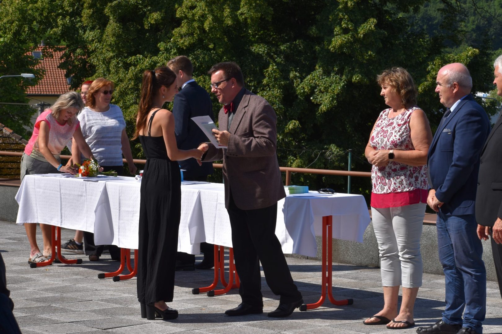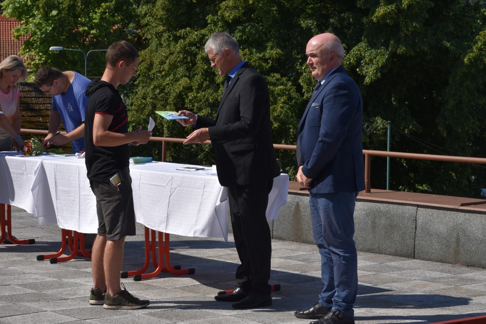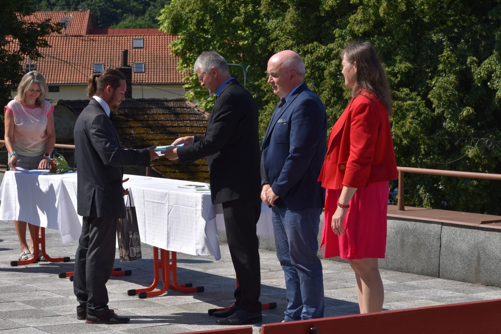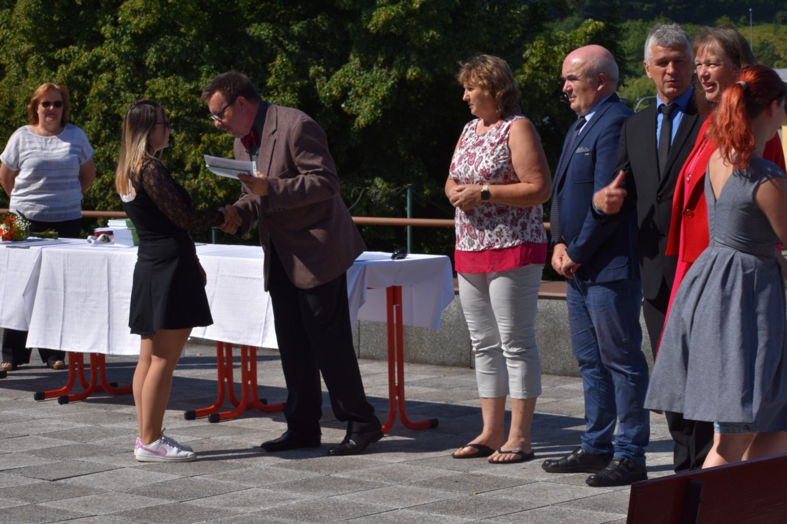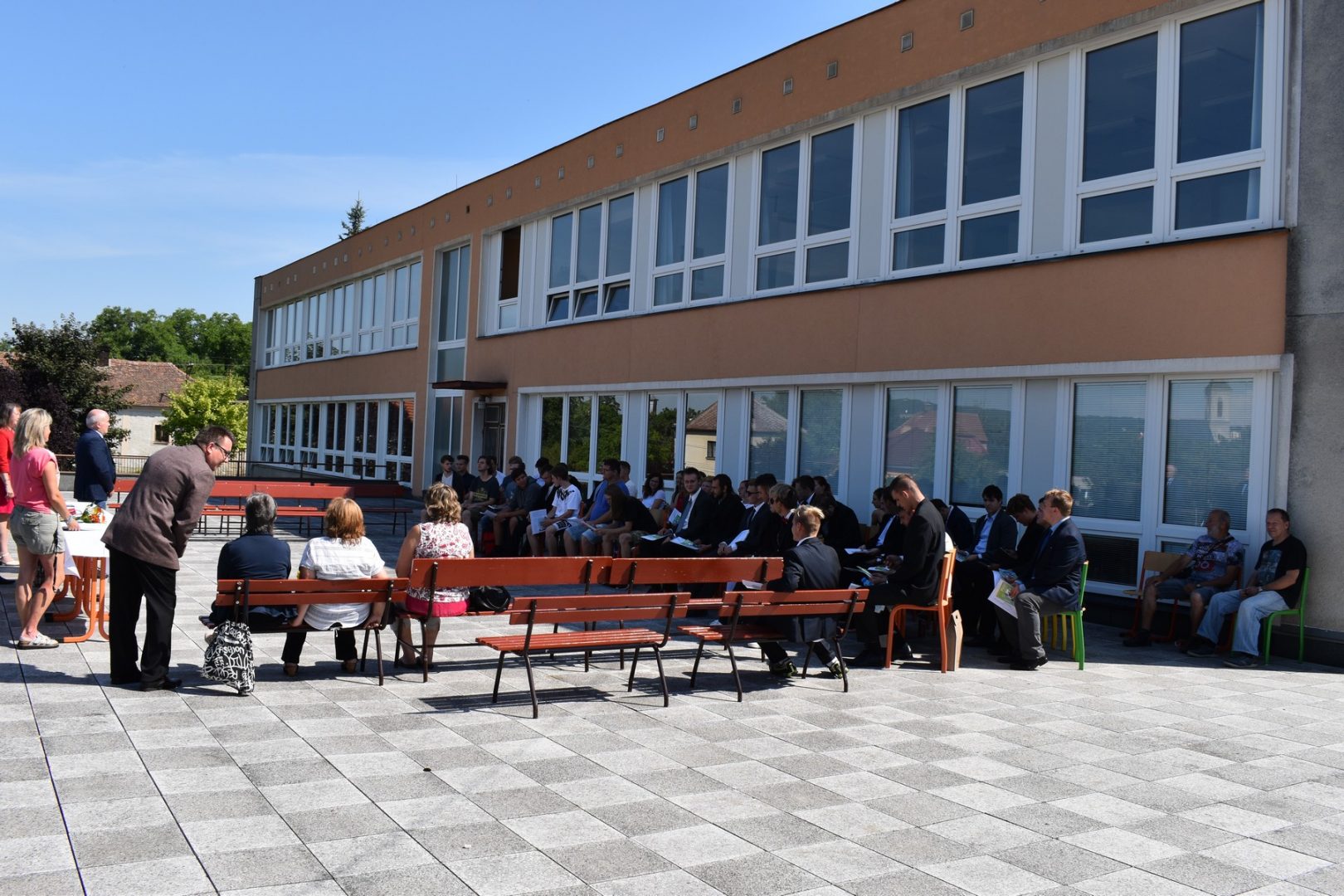 Dnes 16. července 2021 od 10 hod. proběhlo slavnostní předávání výučných listů a vysvědčení o závěrečné zkoušce našim absolventům tříletých učebních oborů elektrikář, kuchař-číšník, pokrývač, strojní mechanik, truhlář a zedník na terase vzdělávací budovy Čáslavská 202. Letošní školní rok byl velice složitý a náročný, což všichni víme moc dobře. Většina výuky ve školním roce probíhala distančním způsobem. Když už se dostali žáci v květnu 2021 do školy na prezenční výuku, využil ředitel školy možnost prodloužit výuku (především odborného výcviku) do letních prázdnin. Celkem se výuka prodloužila oproti minulým letům o jeden měsíc. Tím se podařilo učitelům odborných předmětů a odborného výcviku udržet úroveň získaných kompetenci budoucích řemeslníků v požadované kvalitě. Jednotliví absolventi tedy nebudou určitě zklamaní, že na výučním listu mají uvedený covidový školní rok 2020-2021. O všem hovoří výsledky, kdy ze 65 úspěšných absolventů prospělo s vyznamenáním 20 žáků. Velké díky patří všem vyučujícím, kteří se podíleli na prodlouženém školním roce 2020-2021.