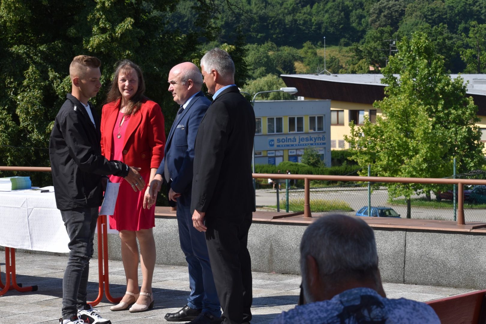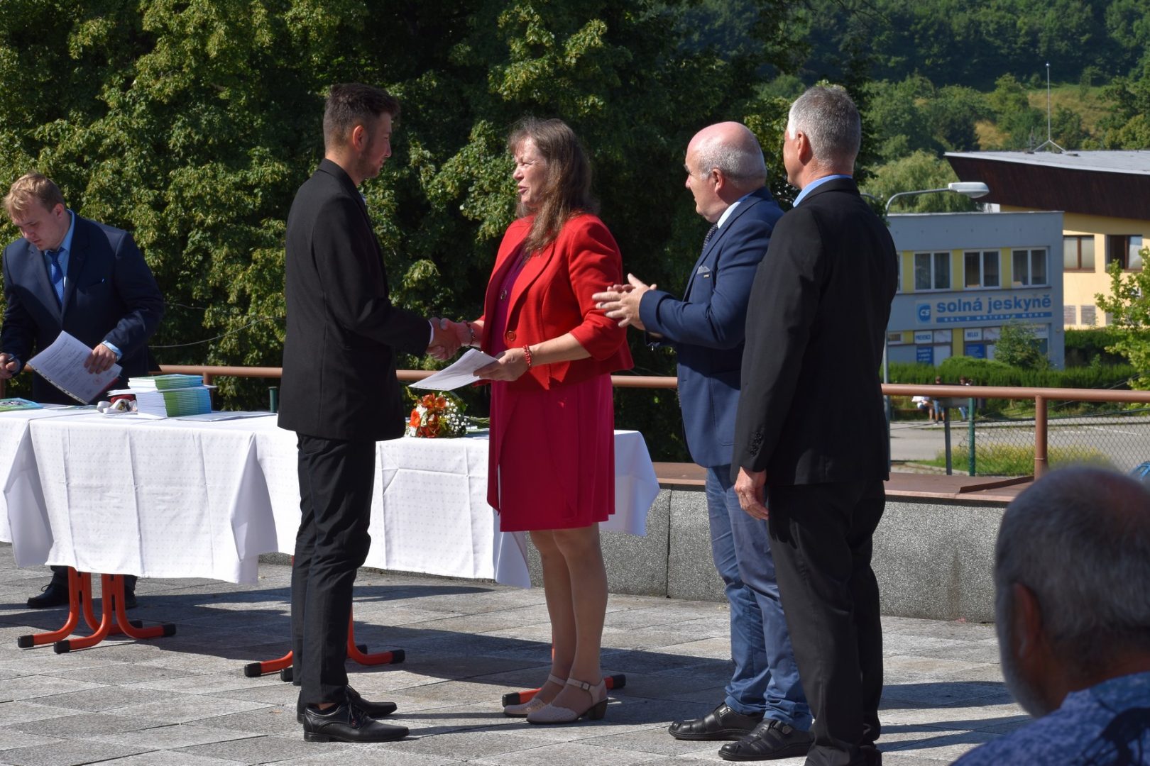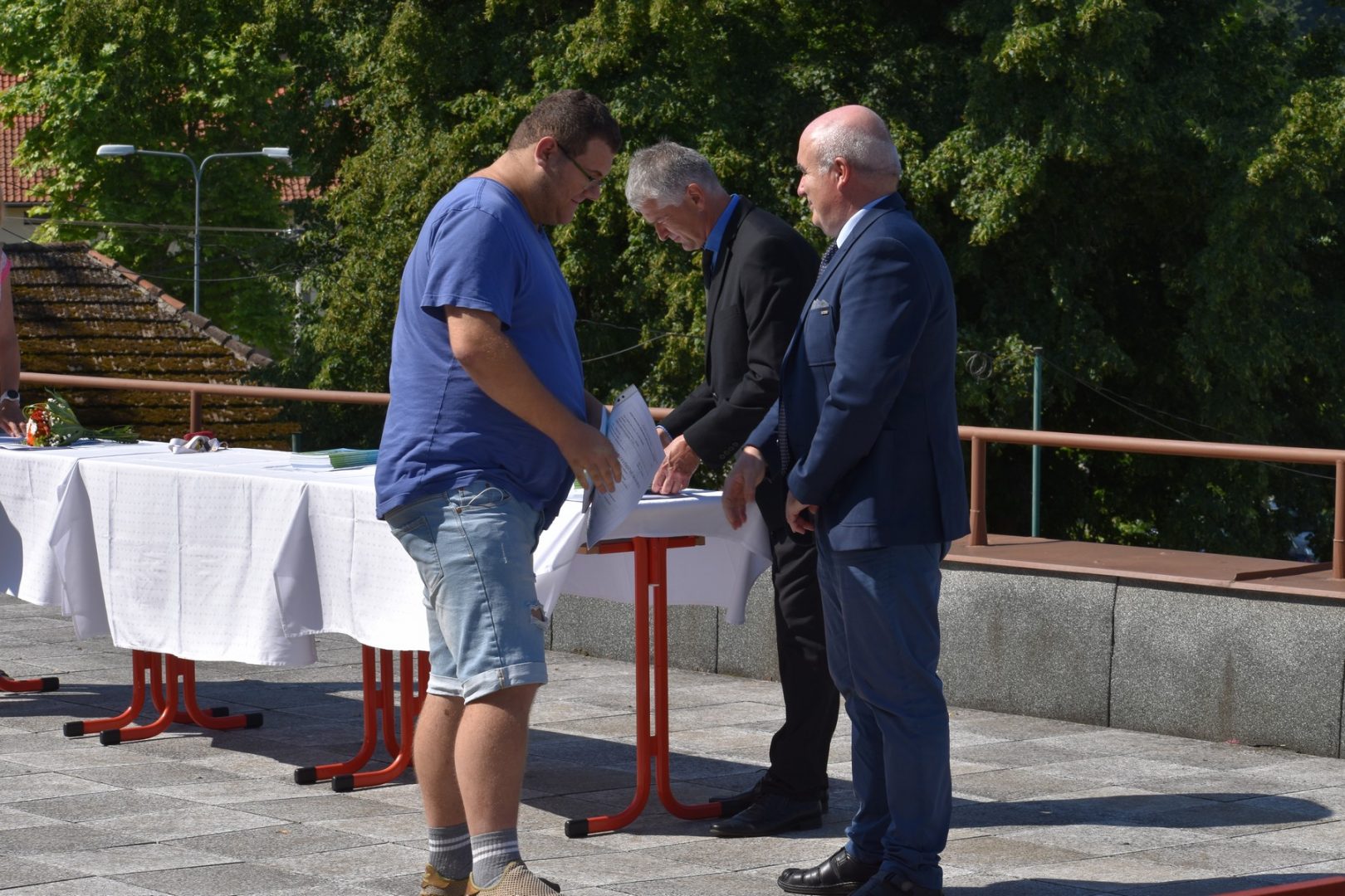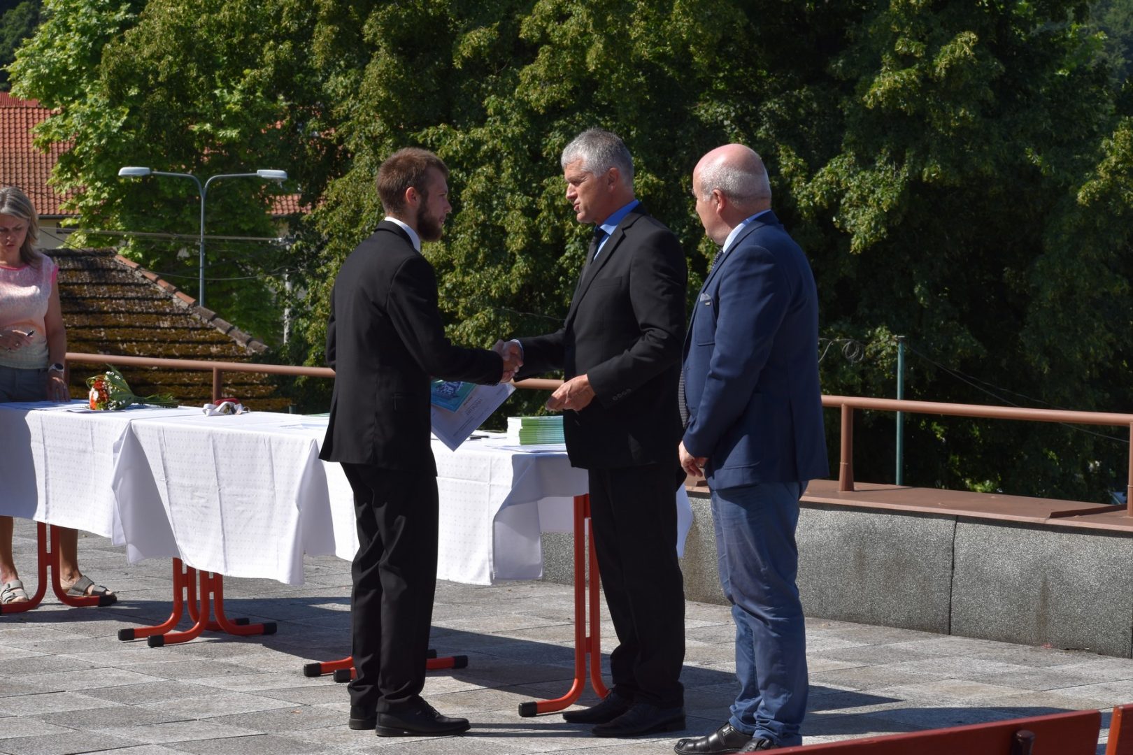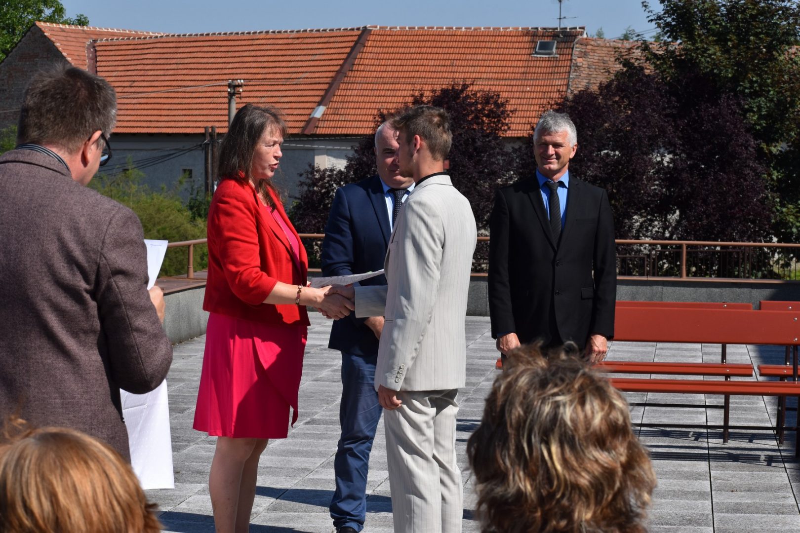 Dnes 16. července 2021 od 10 hod. proběhlo slavnostní předávání výučných listů a vysvědčení o závěrečné zkoušce našim absolventům tříletých učebních oborů elektrikář, kuchař-číšník, pokrývač, strojní mechanik, truhlář a zedník na terase vzdělávací budovy Čáslavská 202. Letošní školní rok byl velice složitý a náročný, což všichni víme moc dobře. Většina výuky ve školním roce probíhala distančním způsobem. Když už se dostali žáci v květnu 2021 do školy na prezenční výuku, využil ředitel školy možnost prodloužit výuku (především odborného výcviku) do letních prázdnin. Celkem se výuka prodloužila oproti minulým letům o jeden měsíc. Tím se podařilo učitelům odborných předmětů a odborného výcviku udržet úroveň získaných kompetenci budoucích řemeslníků v požadované kvalitě. Jednotliví absolventi tedy nebudou určitě zklamaní, že na výučním listu mají uvedený covidový školní rok 2020-2021. O všem hovoří výsledky, kdy ze 65 úspěšných absolventů prospělo s vyznamenáním 20 žáků. Velké díky patří všem vyučujícím, kteří se podíleli na prodlouženém školním roce 2020-2021.