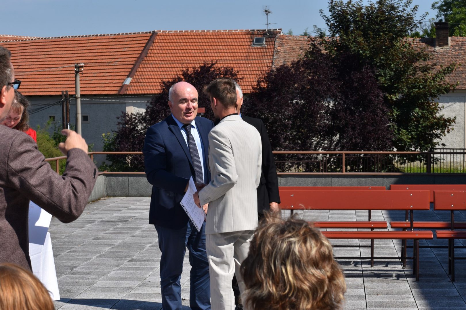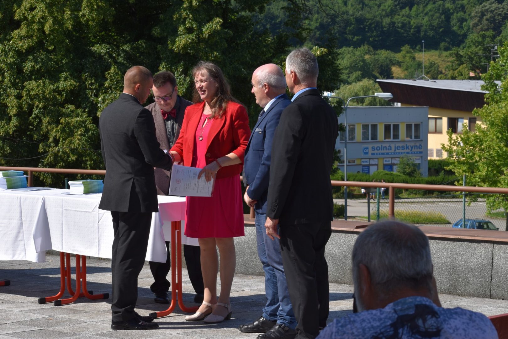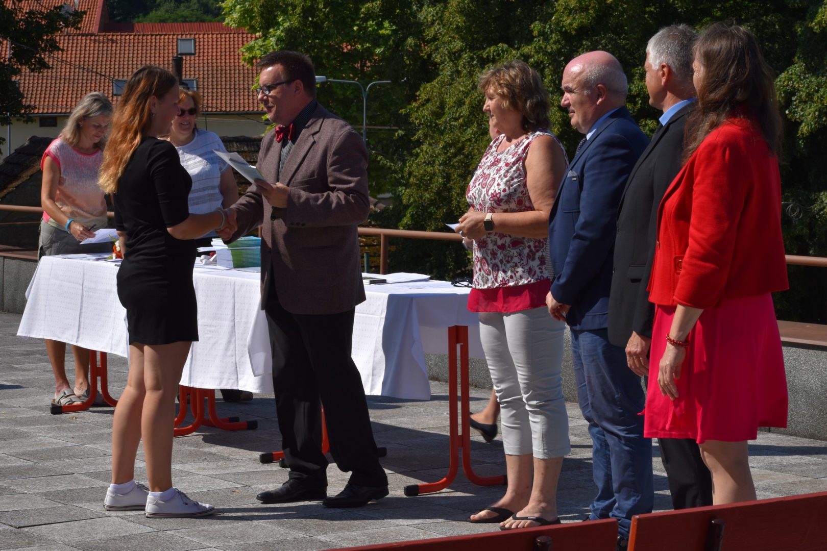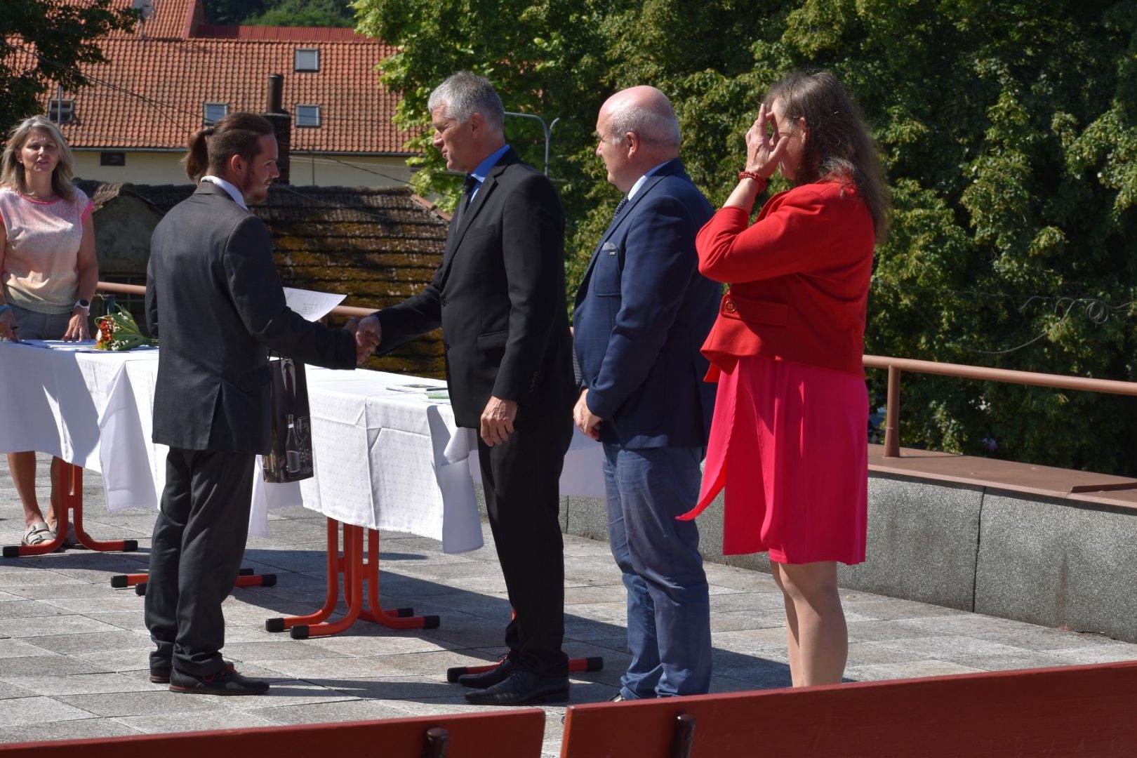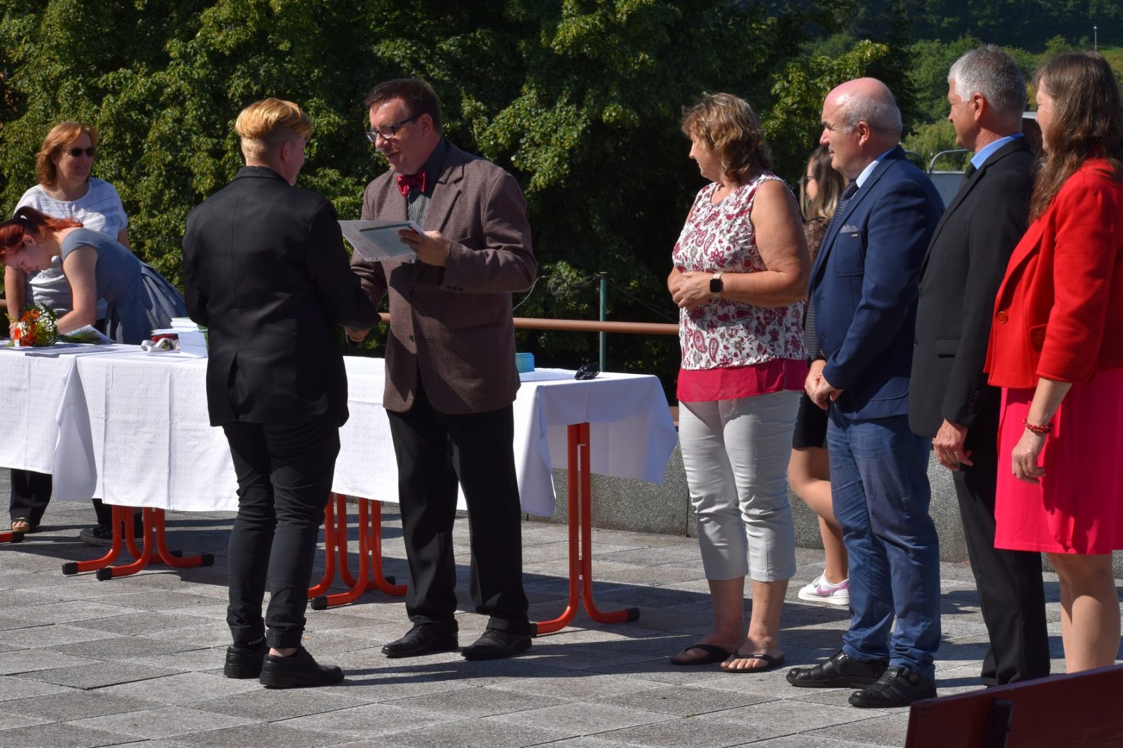 Dnes 16. července 2021 od 10 hod. proběhlo slavnostní předávání výučných listů a vysvědčení o závěrečné zkoušce našim absolventům tříletých učebních oborů elektrikář, kuchař-číšník, pokrývač, strojní mechanik, truhlář a zedník na terase vzdělávací budovy Čáslavská 202. Letošní školní rok byl velice složitý a náročný, což všichni víme moc dobře. Většina výuky ve školním roce probíhala distančním způsobem. Když už se dostali žáci v květnu 2021 do školy na prezenční výuku, využil ředitel školy možnost prodloužit výuku (především odborného výcviku) do letních prázdnin. Celkem se výuka prodloužila oproti minulým letům o jeden měsíc. Tím se podařilo učitelům odborných předmětů a odborného výcviku udržet úroveň získaných kompetenci budoucích řemeslníků v požadované kvalitě. Jednotliví absolventi tedy nebudou určitě zklamaní, že na výučním listu mají uvedený covidový školní rok 2020-2021. O všem hovoří výsledky, kdy ze 65 úspěšných absolventů prospělo s vyznamenáním 20 žáků. Velké díky patří všem vyučujícím, kteří se podíleli na prodlouženém školním roce 2020-2021.
