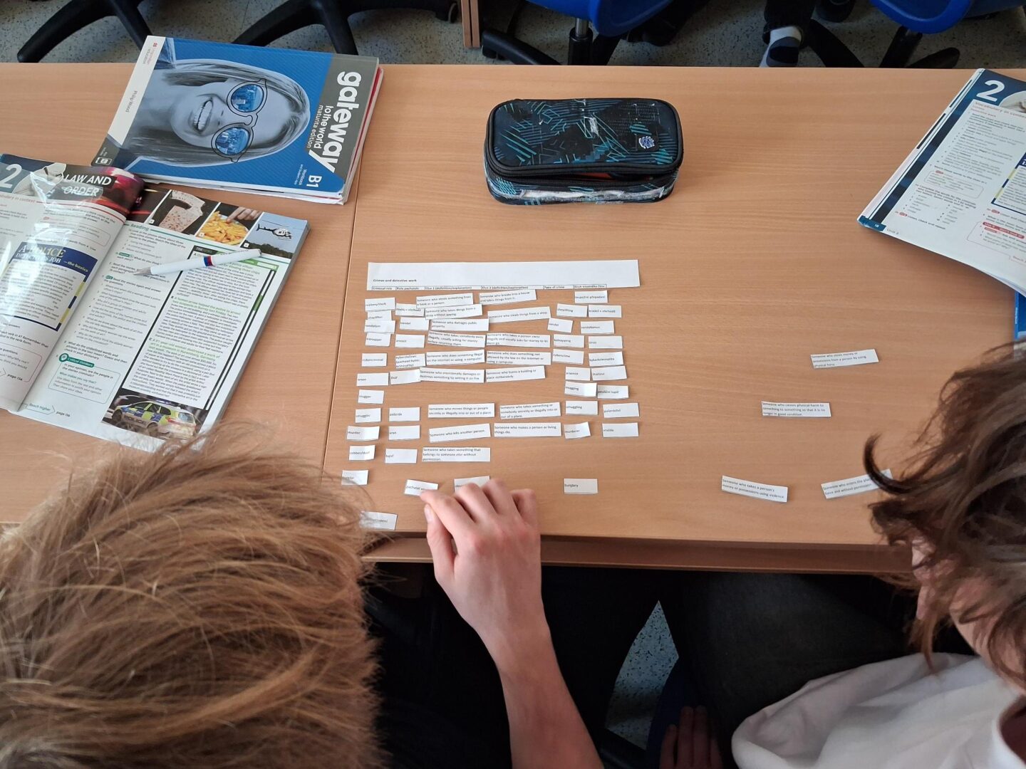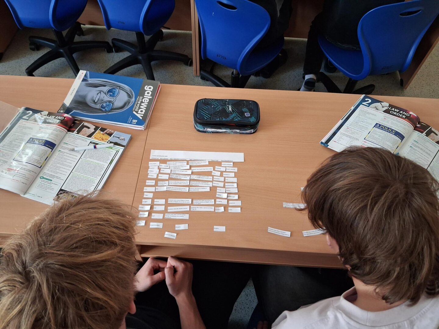 Žáci prvního ročníku oboru Bezpečnostně právní činnost si v hodině anglického jazyka vyzkoušeli znalosti právní terminologie nejen v českém, ale i v anglickém jazyce. V rámci výukového bloku „Law and order“ (Právo a pořádek) vyhledávali správné definice k názvům trestných činů a pachatelů trestných činů. Zúročili tak znalosti z předmětu právo, a navíc posílili své schopnosti vyjadřovat se pomocí odborné angličtiny.